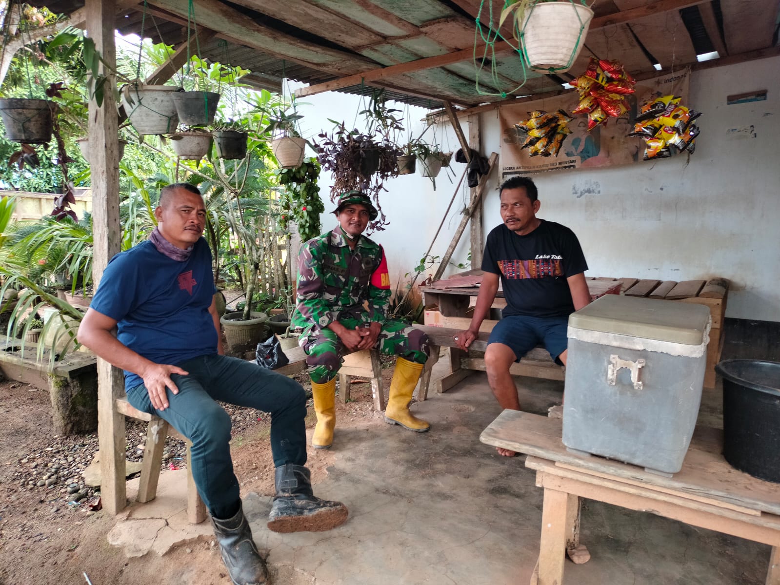 Jalin Komsos, Serda Dimas Prayogo Babinsa Koramil 406-04/Muara Lakitan Desa lubuk pandan Ingatkan Warga tentang Bahaya Karhutla.