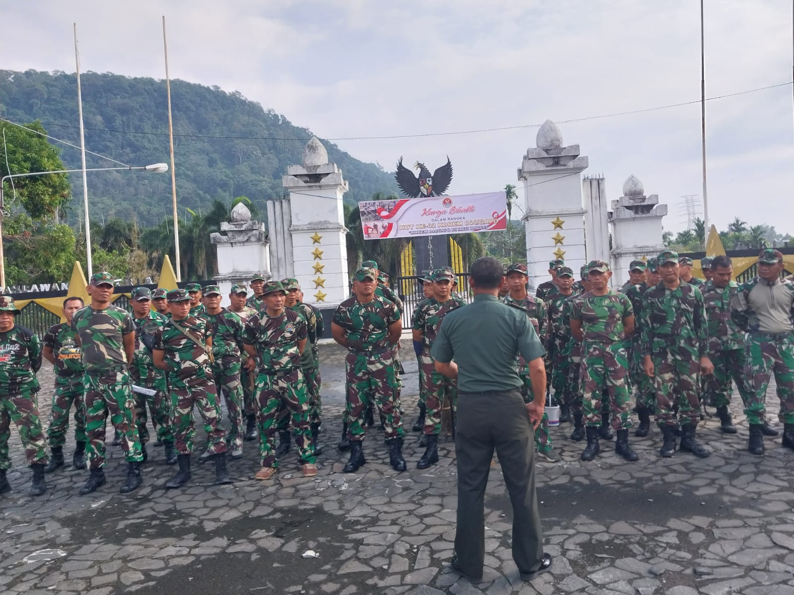 Kapten Inf Agus Cahyono menyampaikan bahwa Kegiatan karya bakti TNI ini merupakan salah satu program kerja TNI AD khususnya bidang pembinaan teritorial. Ia juga menjelaskan bahwasanya karya bhakti yang dilaksanakan hari ini dalam rangka menyambut HUT KOREM 044/GAPO Ke-42 Tahun 2023 yang jatuh pada tanggal 30 Juni mendatang.