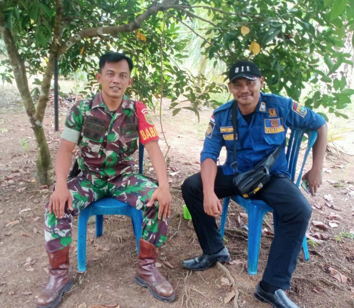 Babinsa Koramil 406-07/jayaloka Serda Wisnu Komsos Dengan Anggota Damkar di wilayah binaan.