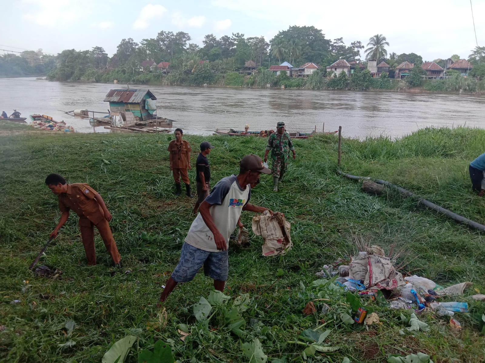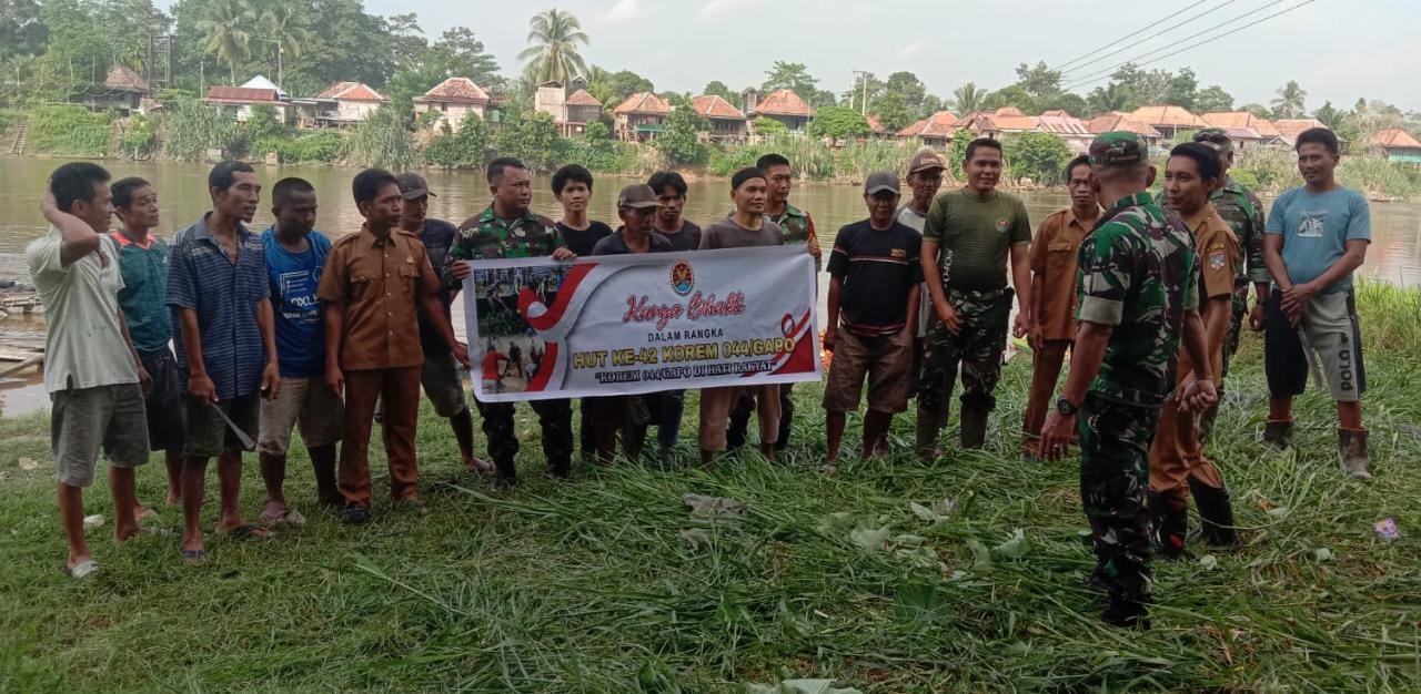 Lensa Garuda. Musi Rawas Utara – Pembersihan dibantaran Sungai Desa Tanjung Raja Kecamatan Rawas Ilir Kabupaten Musi Rawas Utara yang di Pimpin langsung oleh Danramil 406-02/Rawas Ilir Kapten Czi Epi Sugiharto merupakan rangkaian kegiatan peringatan HUT Korem ke-42. Pada Selasa, (13/06/2023).