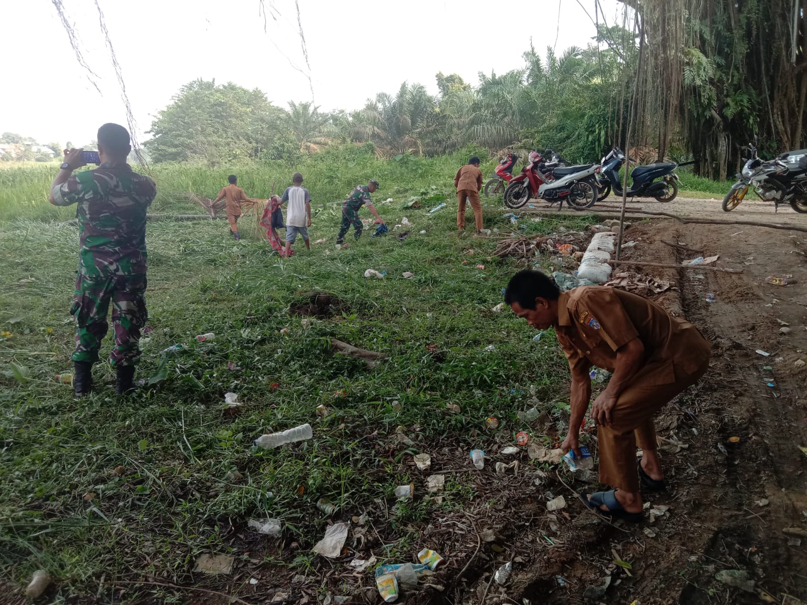 Danramil 406-02/Rawas Ilir Pimpin Langsung Karya Bakti Pembersihan Sampah di Bantaran Sungai Desa Tanjung Raja