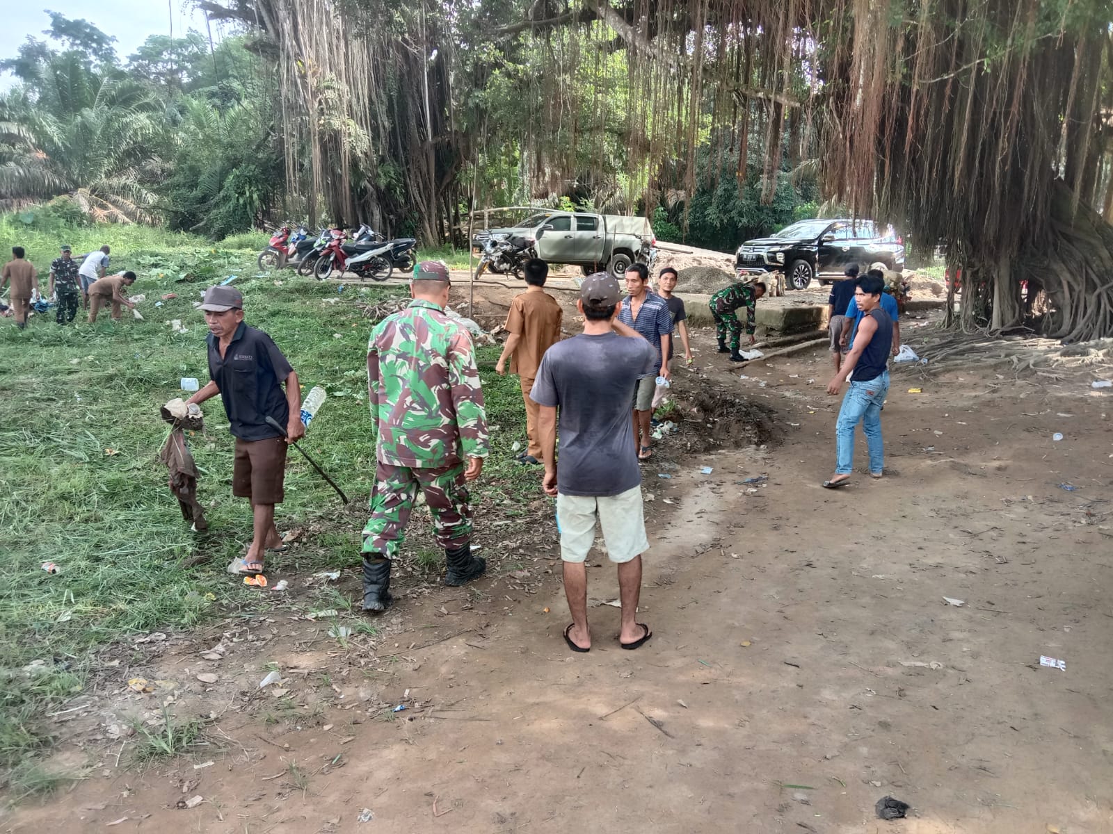 Dengan menggunakan peralatan seadanya bersama Anggota Koramil 406-02/Rawas Ilir Kodim 0406/Lubuklinggau, Kades Tanjung Raja Bpk.Mardian.SH, Kadus-3 Bpk.Amrul, Tokoh Masyarakat Bpk.Sulaiman serta Tokoh Pemuda Bpk.Engga serta warga masyarakat melaksankan pembersihan sampah Plastik, sampah pohon dan ranting kayu di sungai atau di bantaran sungai.