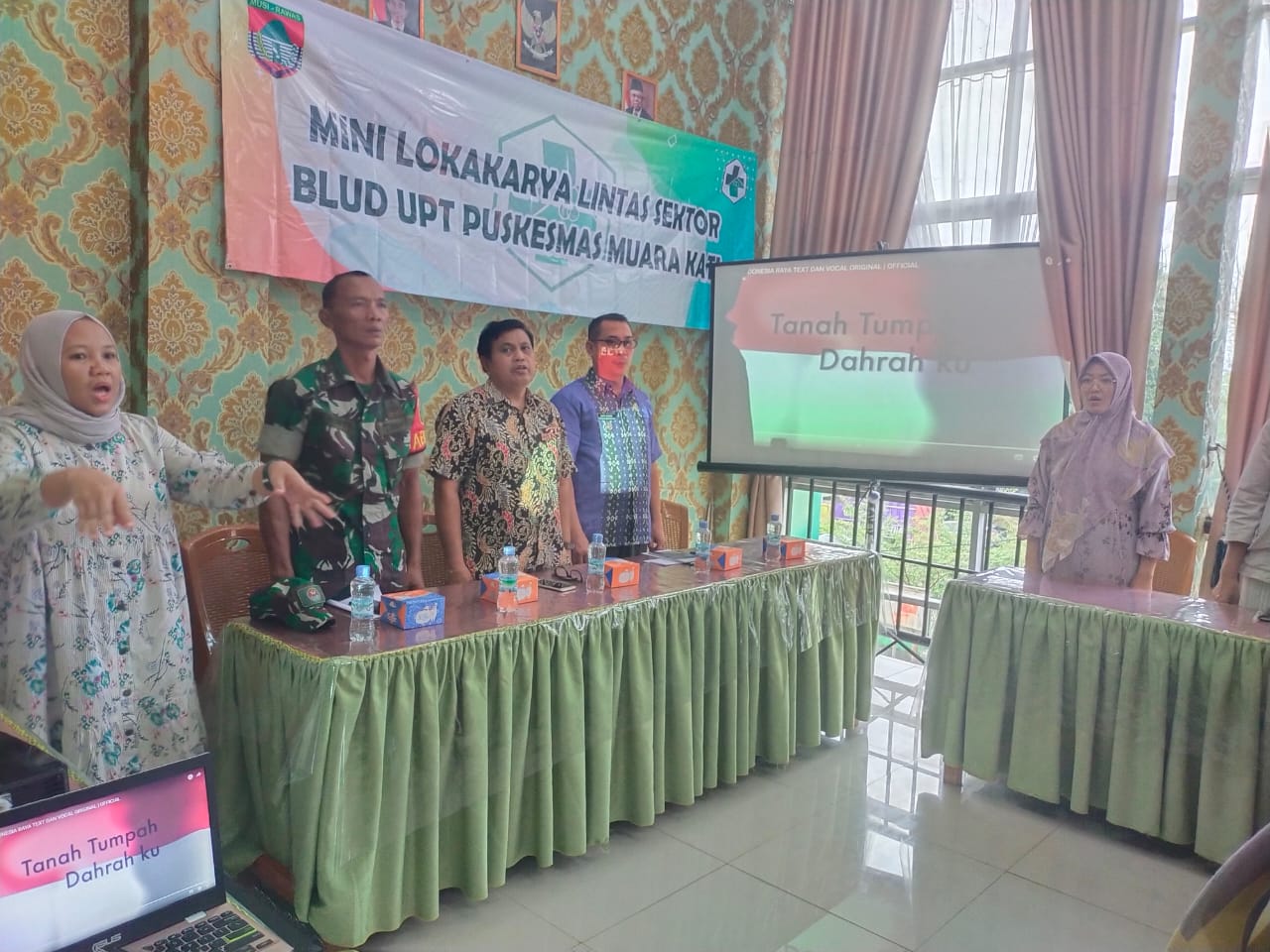 Babinsa Koramil 406-06/Tugumulyo Kodim 0406/Lubuklinggau pelda Siswanto hadiri kegiatan lokakarya mini bulanan (Rapat Lintas Sektor UPT Puskesmas Muara kati) tahun 2023 bertempat di puskesmas muara kati Kecamatan tiang Pumpung kepungut Kabupten Musi Rawas, Jum’at (16/06/2023).