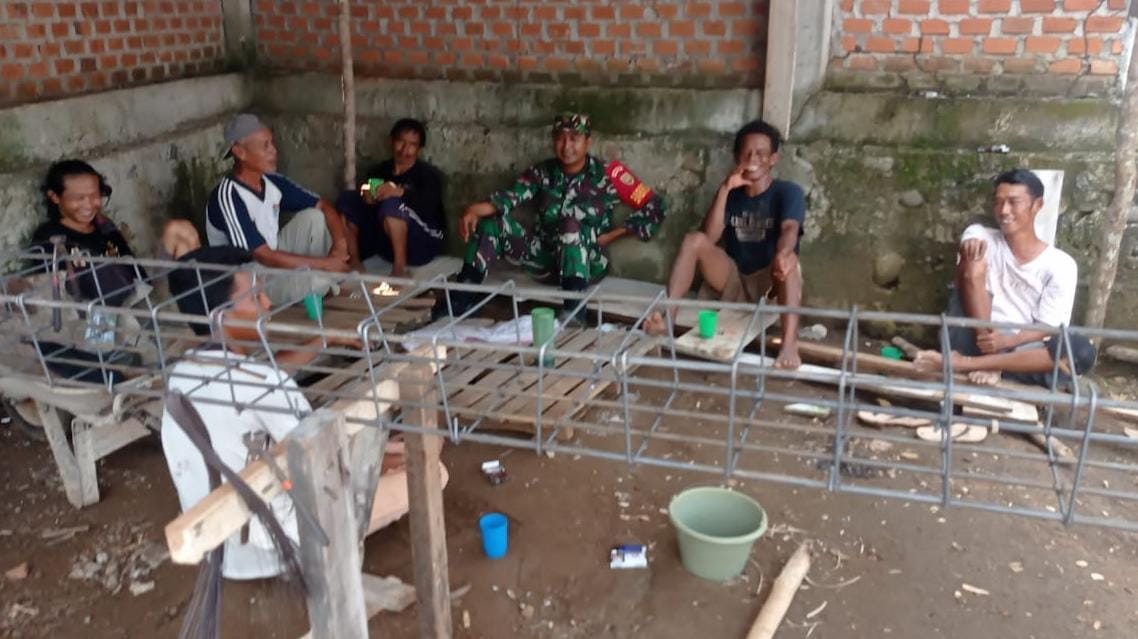 Babinsa Koramil 406-03/Muara Rupit Kopda Eko Aditia Pratama Kodim 0406/Lubuklinggau melaksanakan Komunikasi Sosial dengan Pekerja Bangunan di Desa Tanjung Agung Kecamatan Karang Jaya Kabupaten Musi Rawas Utara, Sabtu (17/06/2023).