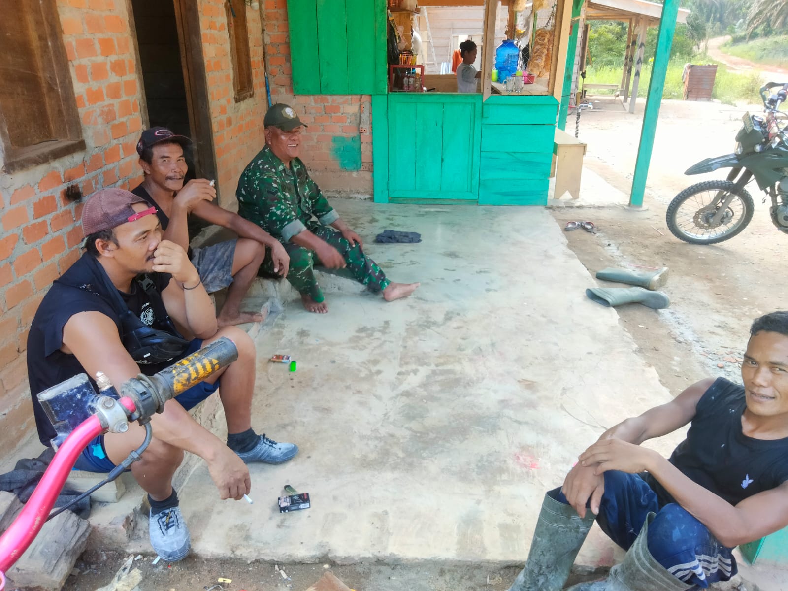 Babinsa desa beringin makmur 1 Sertu Khotob sambangi rumah warga bapak Tukimin warga desa beringin makmur 1 kecamatan Rawas Ilir kabupaten Musi Rawas Utara, Sabtu (17/06/2023).