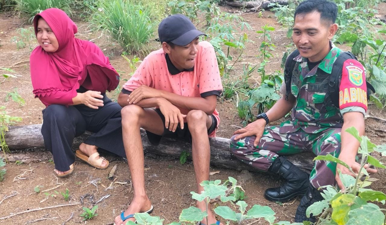 Bintara Pembina Desa (Babinsa) Koramil 406-08/Kota Lubuklinggau jajaran Kodim 0406/Lubuklinggau Serda Haeron turun kewilayah desa binaan untuk melaksanakan kegiatan Komunikasi Sosial (Komsos) bersama dengan petani sayur Bapak Dadang (Petani), bertempat Kelurahan Senalang Kecamatan Lubuklinggau Utara II Kota Lubuklinggau,Sabtu (17/06/2023).