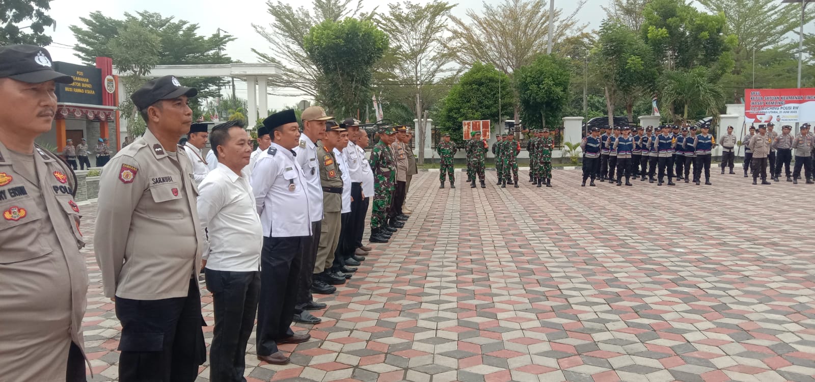 Lensa Garuda–Musi Rawas Utara. Danramil 02/Rawas Ilir menghadiri kegiatan Launching Program Prioritas Kapolri Melalui Program Polisi RW (Rukun Warga) tingkat Polres bertempat di halaman kantor bupati Musi Rawas Utara. Rabu (21/06/2023).