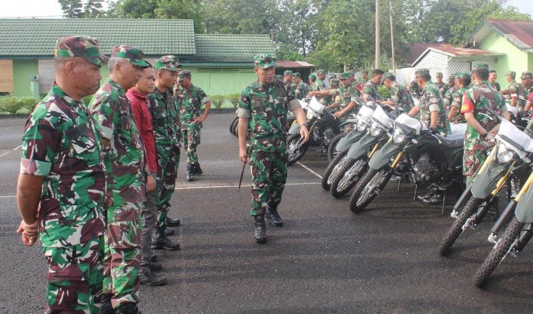 “Pada hari ini kita kita telah menerima dan mendapatkan 40 unit kendaraan dinas roda dua dari kementerian pertahanan RI, dengan adanya jumlah 40 maka kita memberikannya kepada seluruh Koramil dimana Koramil kita saat ini ada 11 Koramil dengan jumlah 7 Koramil mendapatkan 4 unit dan 4 Koramil mendapatkan 3 unit secara totalnya semuanya 40 dan dibagikan kepada para Babinsa”ungkapnya.