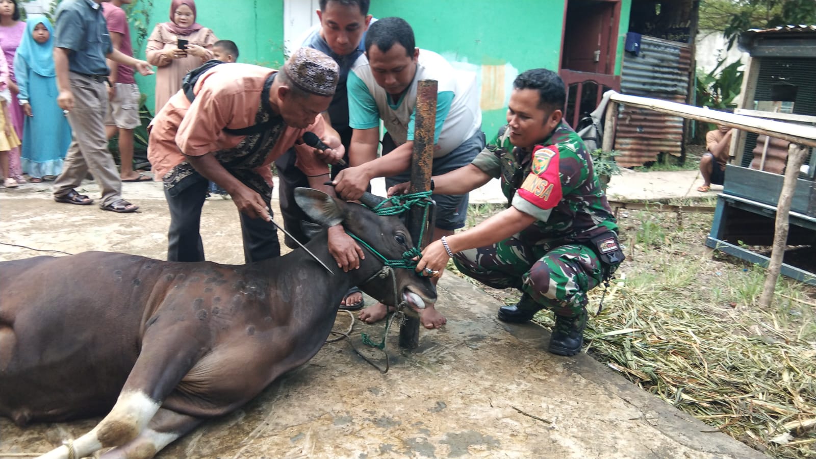 Babinsa Koramil 406-08/Kota Lubuklinggau Sertu Afrizal melaksanakan Komunikasi Sosial (Komsos) berbaur dengan Komponen Masyarakat dan membantu pemotongan hewan Qurban Kelurahan Talang Bandung Ujung Kecamtan Lubuklinggau Barat 1 Kota Lubuklinggau, Kamis (29/06/2023).