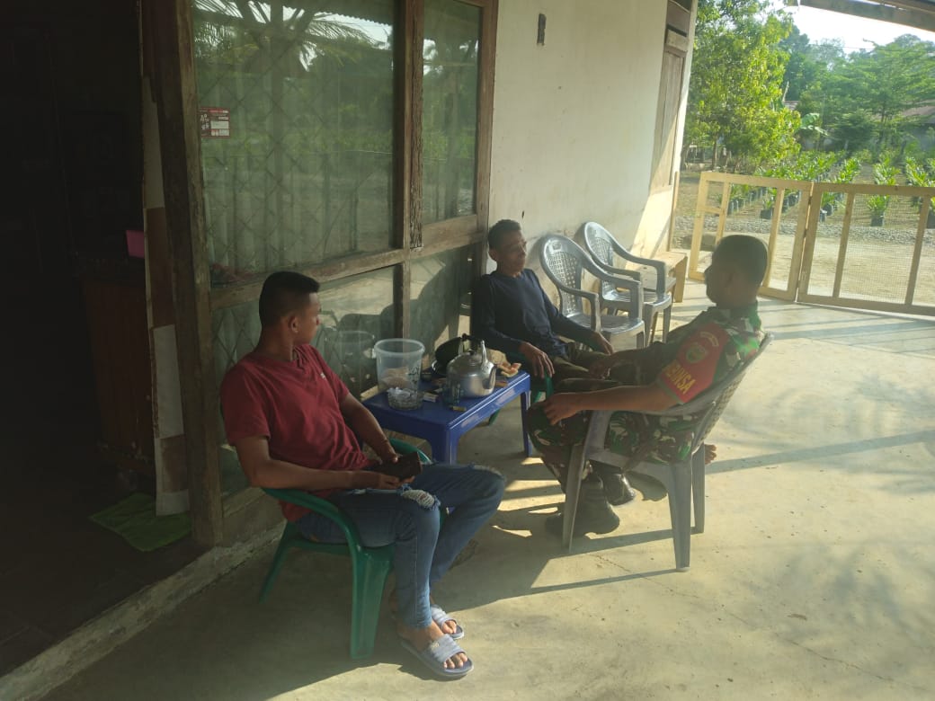 Babinsa Koramil 406-07/jayaloka Kodim 0406/jayaloka Sertu Adul Rohim Komsos dengan bapak herman Ketua kelompok tani Desa suka rena, Kecamatan suka karya, Kabupaten Musi Rawas, Rabu (12/07/2023).