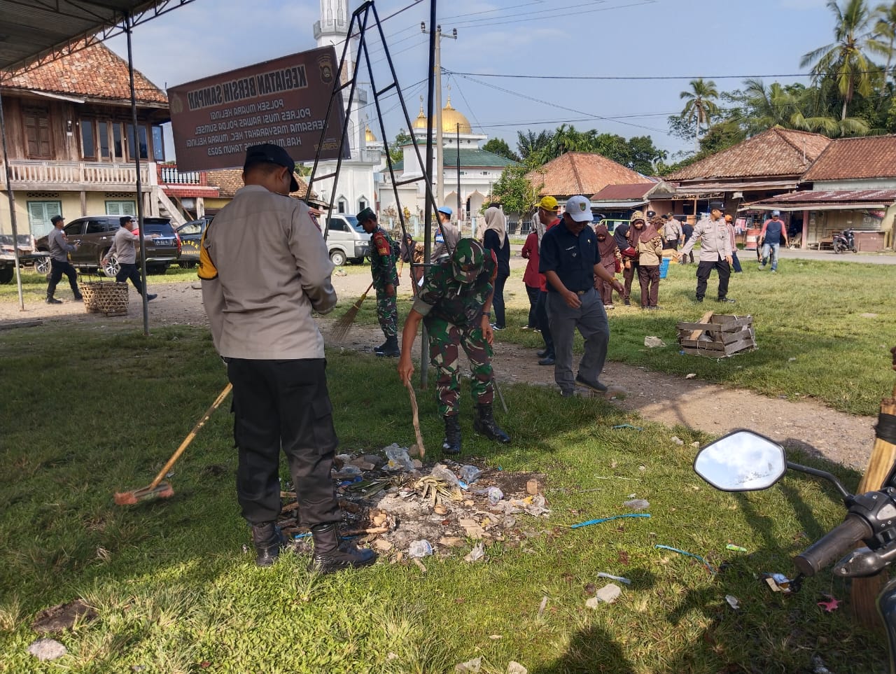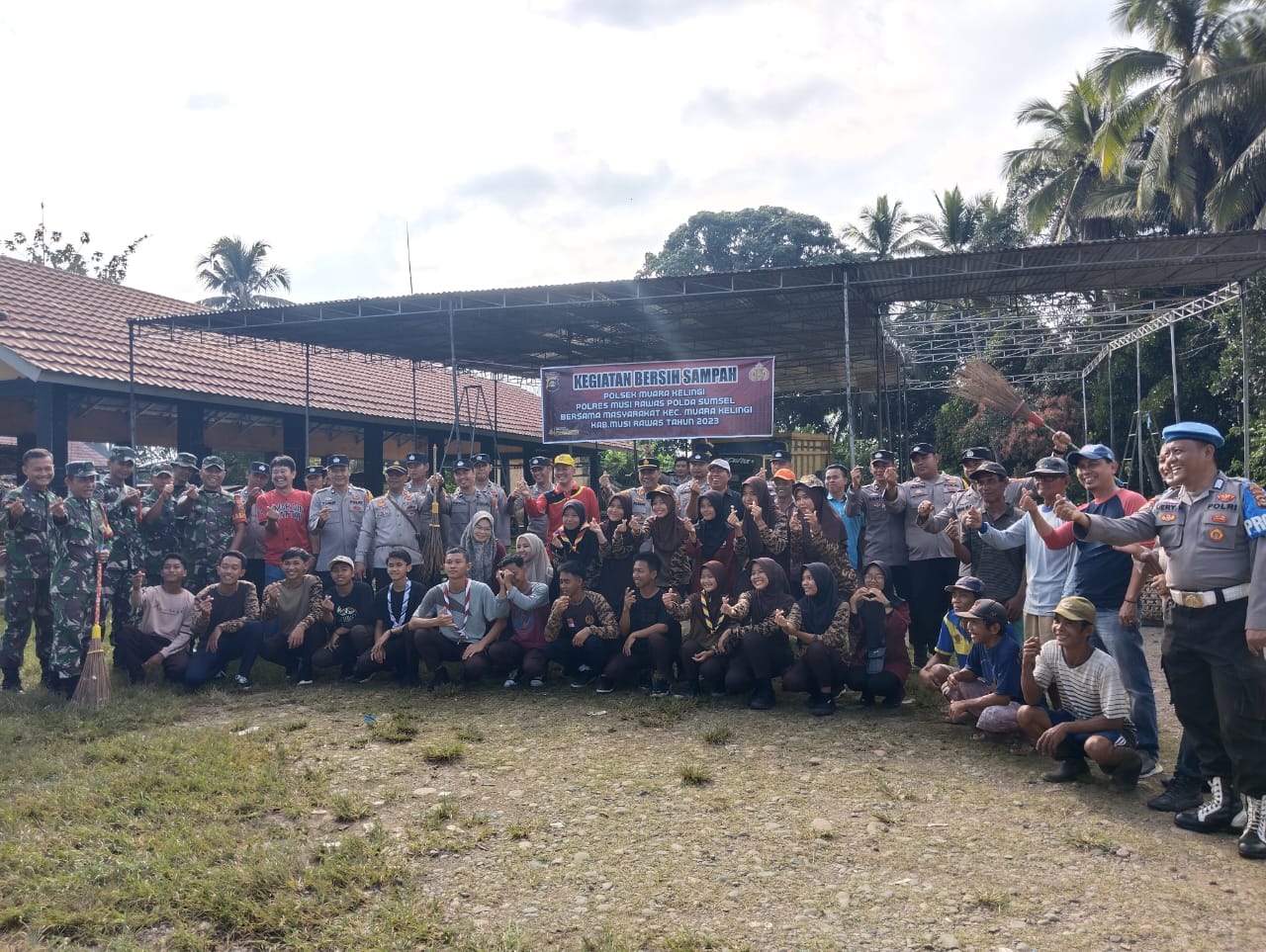 Anggota Koramil 406-05/Muara Kelingi Bersinergi Dengan Polsek, Masyarakat dan Pelajar Bersihkan Sampah