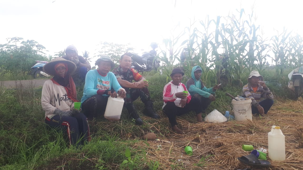Di sela Istirahat Babinsa Koramil 406-06/Tugumulyo Laksanakan Komsos dengan Petani