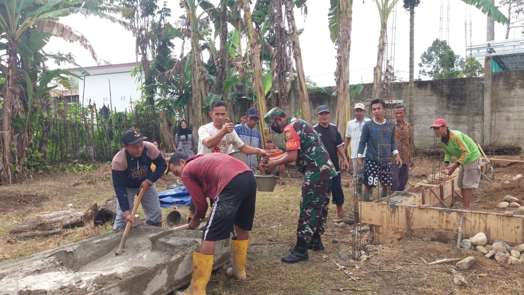 Babinsa Koramil 406-01/Rawas Ulu Serma Irwan melaksanakan gotong royong didesa binaan.