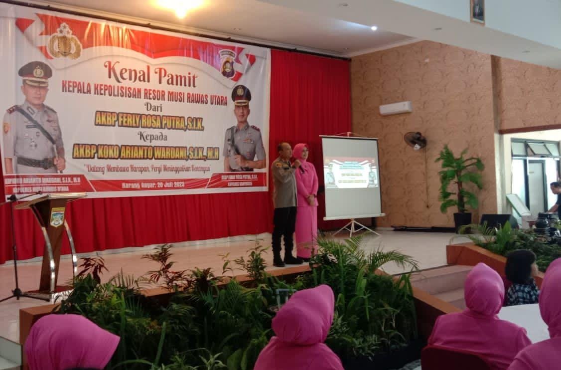 Dalam sambutan AKBP Ferly Rosa Putra S.I.K. saat acara Kenal Pamit Kapolres Musi Rawas Utara menyampaikan, ungkapan terima kasih dan rasa senang selama menjabat sebagai Kapolres Musi Rawas Utara, selama 1 tahun setengah dia bertugas di Muratara, dirinya merasa bangga, yang mana selama ini orang menilai Muratara gersang dan tidak aman,ternyata damai.