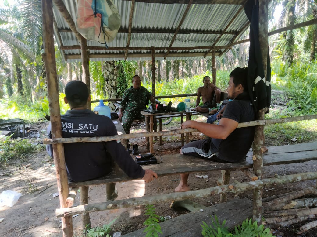 Babinsa Koramil 406-02/Rawas ilir Sertu Khotop komsos bersama petani sawit di wilayah Binaan.