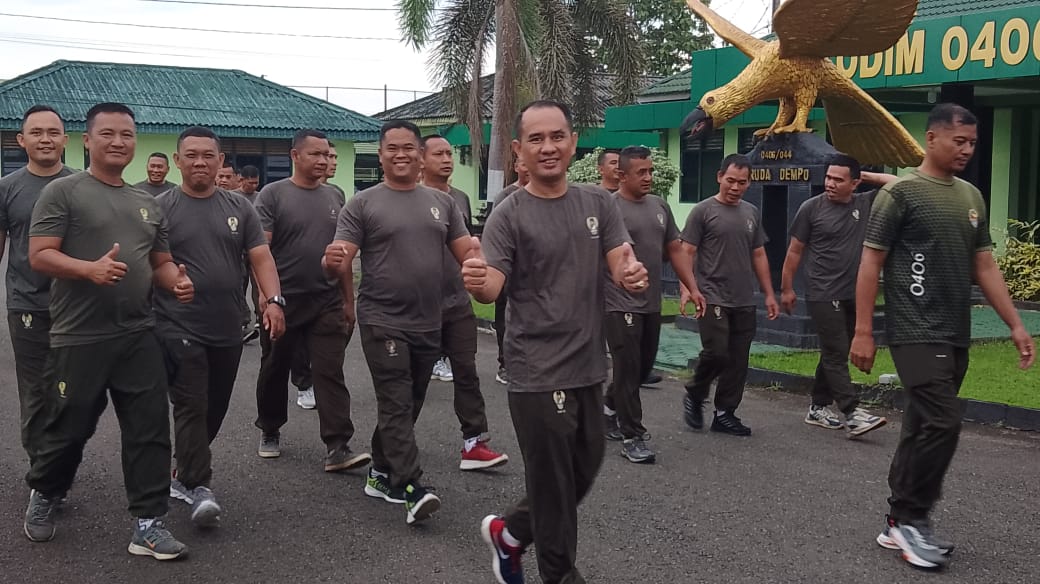 Setelah pelaksanaan apel pagi kegiatan dilanjutkan dengan senam pemanasan dilanjutkan olahraga lari dan jalan santai mengitari route lari Makodim 0406/Lubuk Linggau.