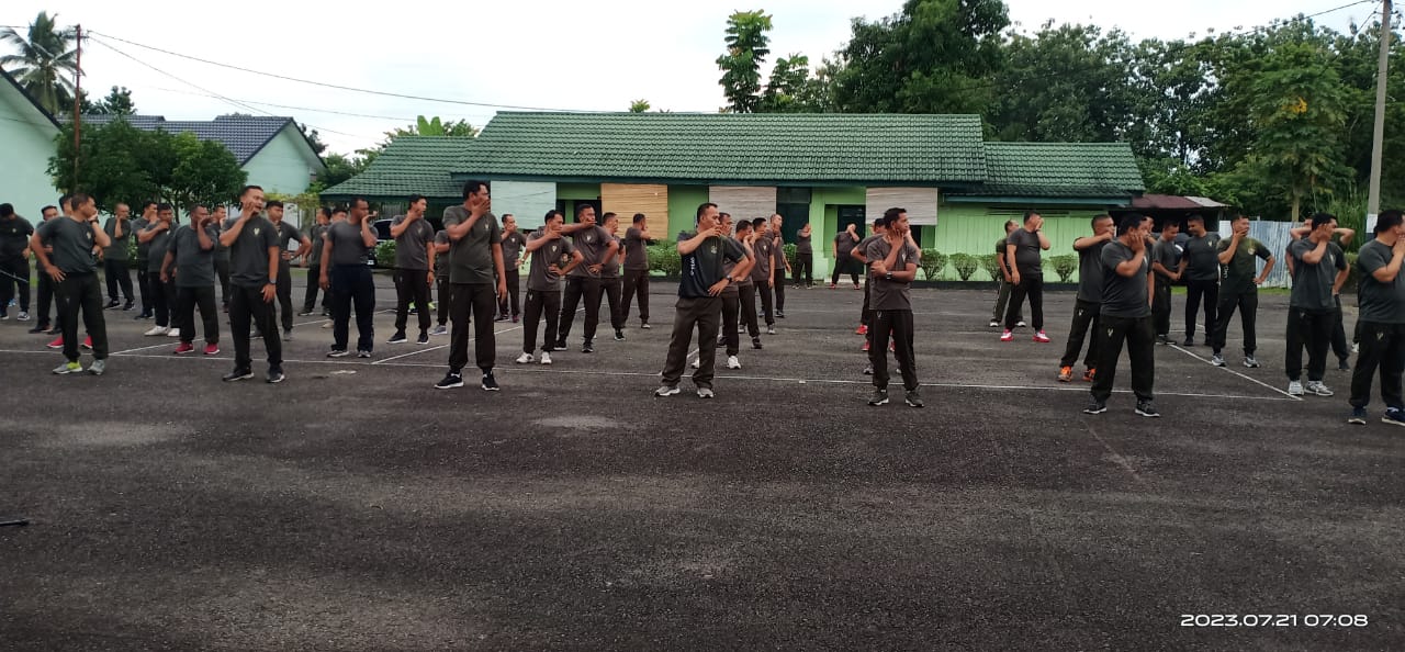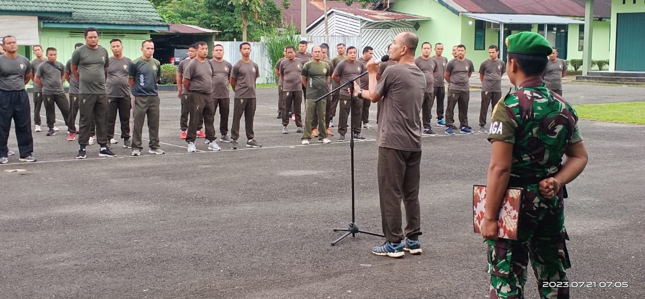 Saat pelaksanaan apel pagi diambil oleh Perwira Seksi Logistik (Pasi Log) Kapten Inf Susanto. Ia menyampaikan untuk menunjang tugas-tugas kedepan setiap personil harus tetap menjaga kesehatan dan kebugaran jasmani masing-masing.