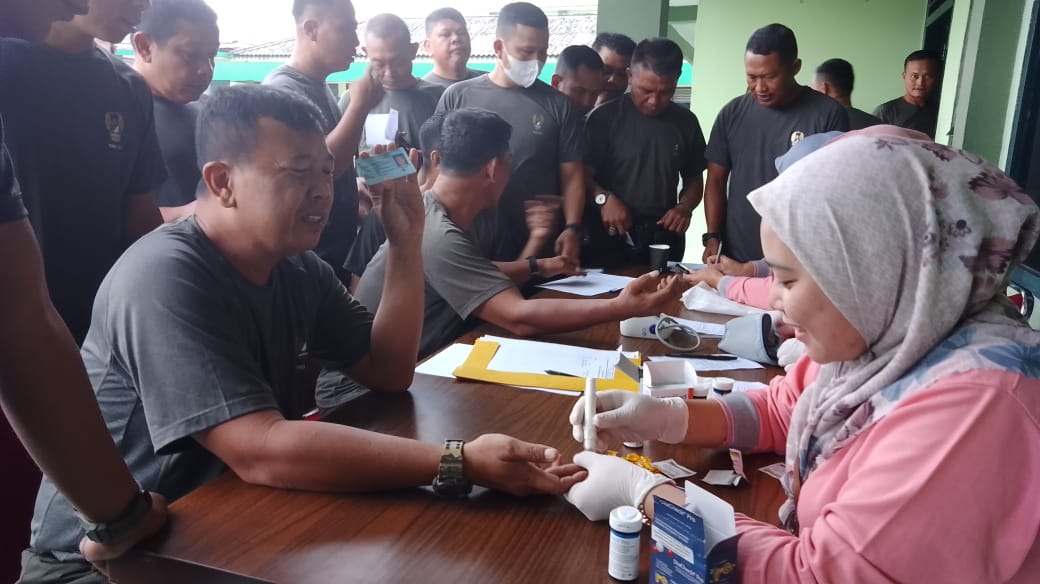 Dalam Menjaga Kesehatan Anggota Kodim 0406/Lubuk Linggau Melaksanakan Olahraga dan Periksa Kesehatan Gula Darah
