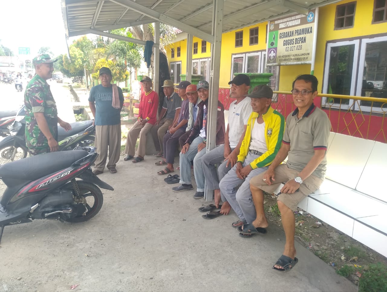 Babinsa Koramil 406-01/Rawas Ulu melaksanakan kegiatan komunikasi sosial(komsos)dikelurahan pasar surulangun, Kecamatan Rawas Ulu, Kabupaten Musi rawas Utara . Sabtu (22/07/2023).