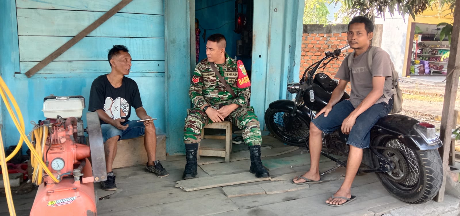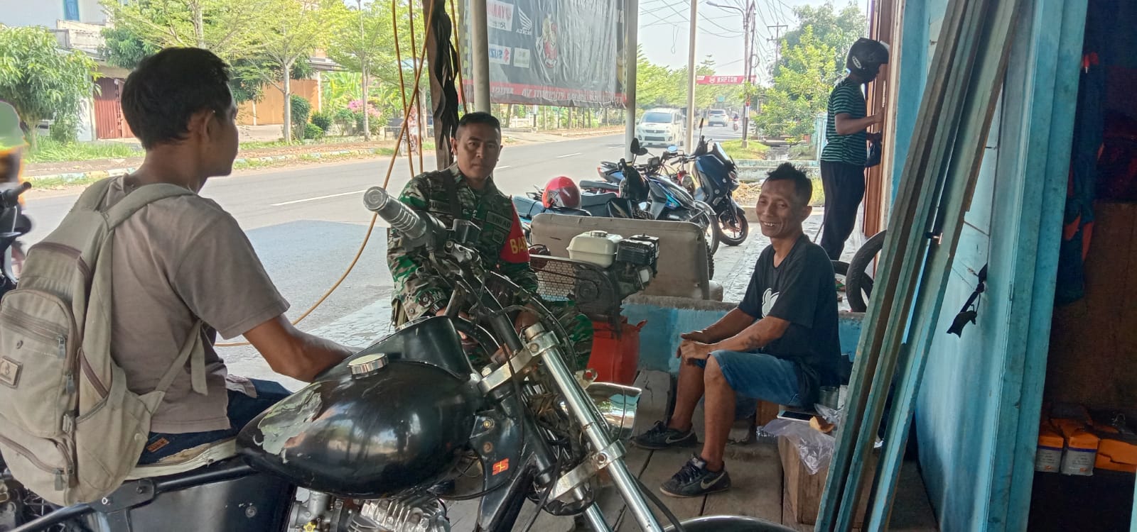 Personil Koramil 406-06/Tugumulyo Kodim 0406/Lubuklinggau,Koptu Sujarwo melaksanakan kegiatan anjang sana kepada Saudara Sugeng mekanik/ tambal ban di desa Widodo , kecamatan Tugumulyo, kabupaten Musi Rawas, Sabtu (22/07/2023).