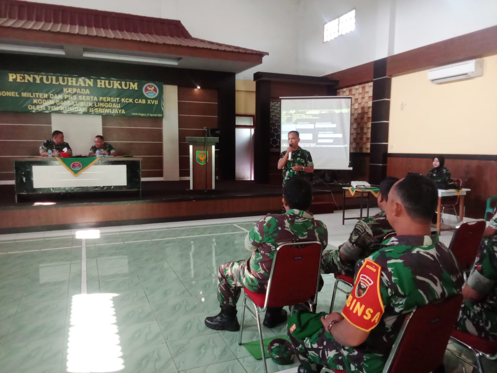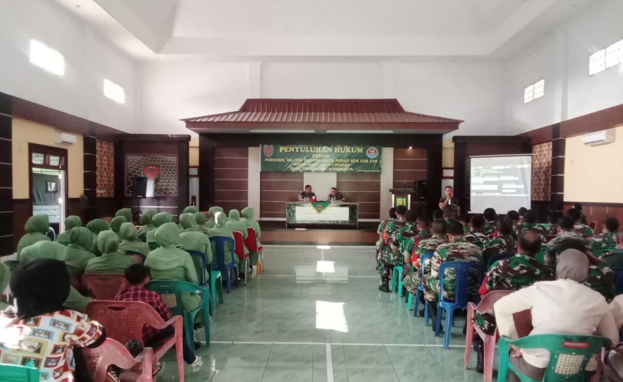 Lensa Garuda- Lubuk Linggau, Dalam rangka meningkatkan kesadaran hukum dan meminimalisir angka pelanggaran disiplin prajurit dan PNS Kodim 0406/Lubuk Linggau. Personel TNI dan PNS serta Persit Kartika Chandra Kirana Cabang XVII Kodim 0406/Lubuk Linggau menerima penyuluhan hukum dari Tim Kumdam II/Sriwijaya. Bertempat di Aula Pamungkas Kodim 0406/Lubuk Linggau Jl. Garuda Kelurahan Tanjung Indah, Kecamatan Lubuk Linggau Barat I, Kota Lubuk Linggau. Jum’at (11/08/2023).