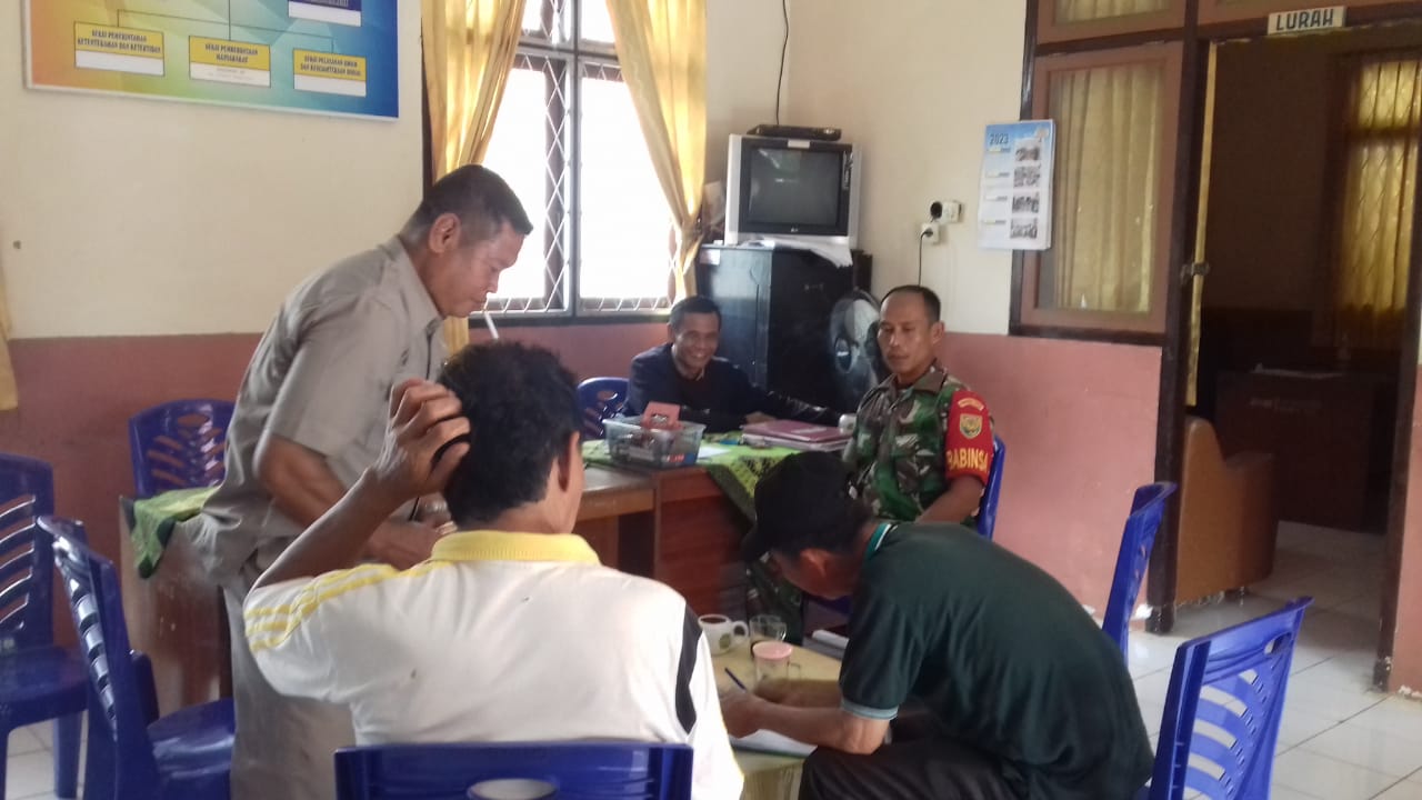 Babinsa KelurahanLubuk Tanjung Koramil 406-08/Kota Lubuklinggau Serda Gunawan, melaksanakan kegiatan Komsos, Bertempat Kantor Lurah Lubuk Tanjung Kelurahan Lubuk Tanjung Kecamatan Lubuklinggau Linggau Barat 1 Kota Lubuklinggau, Selasa (15/08/2023).