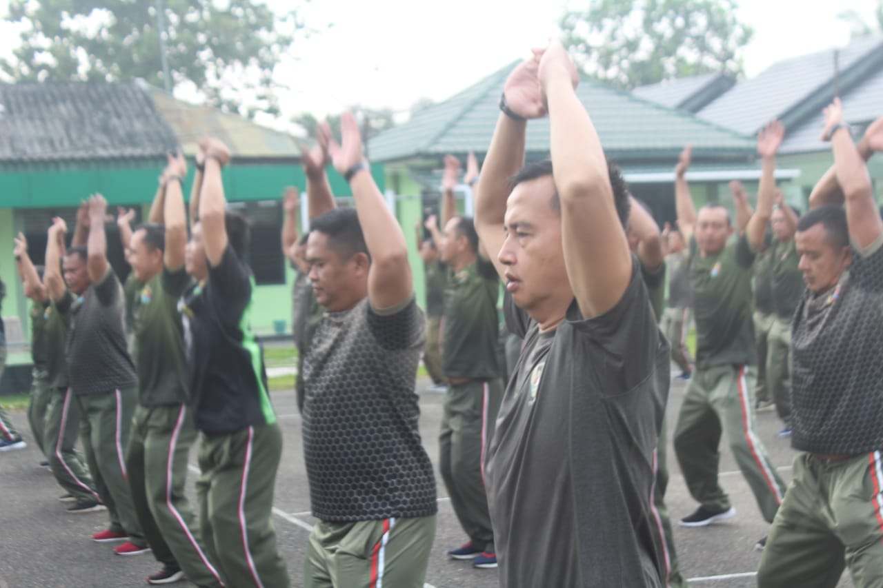 Kepala Staf Kodim 0406/Lubuk Linggau Ambil Apel Pagi Dan Olahraga Bersama
