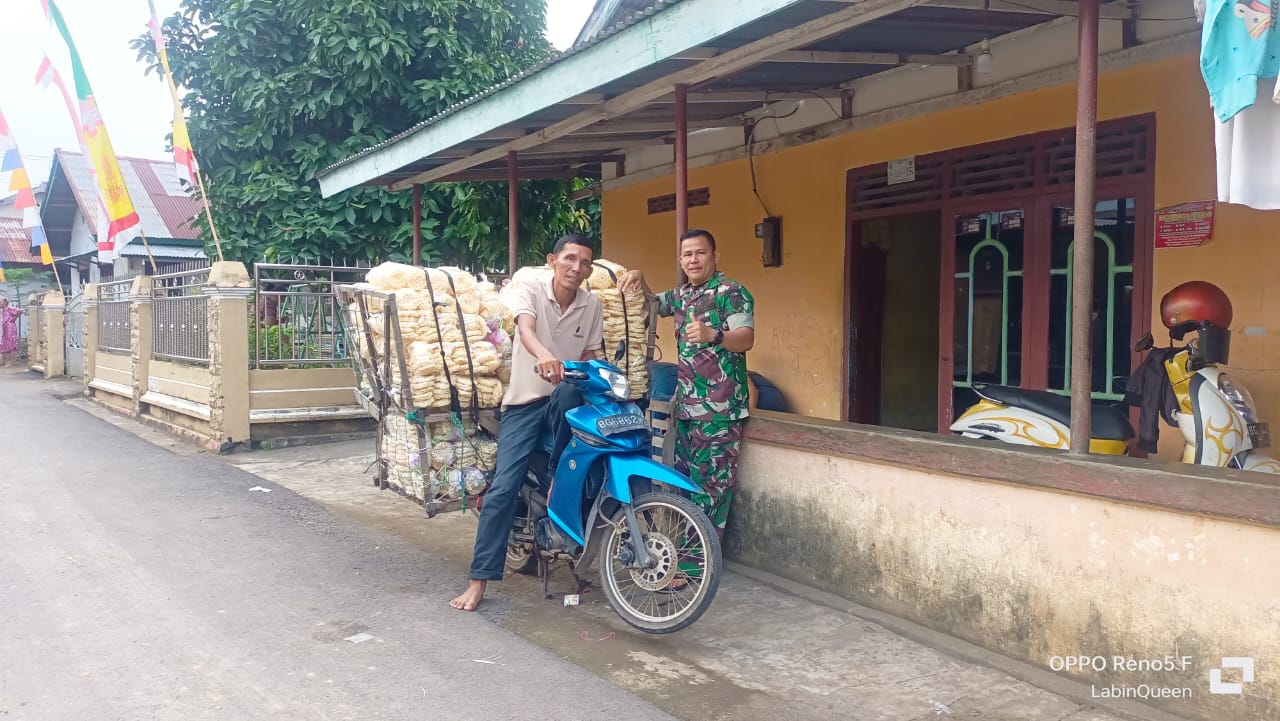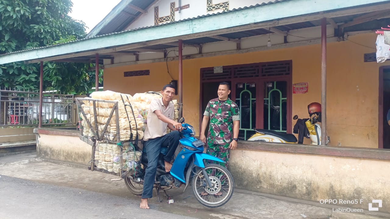 Babinsa Koramil 406-03/Muara Rupit Kodim 0406/Lubuklinggau Serda Juli Hendri melaksanakan komunikasi sosial (Komsos) dengan penjual kerupuk keliling bertempat Desa Lawang Agung kelurahan Muara Rupit Kecamatan Rupit Kabupaten Musi Rawas Utata, Selasa (29/08/2023).