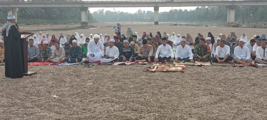Sementara itu dalam penyampaian Khutbahnya menyampaikan, ditahannya hujan yang menyebabkan kekeringan, kebakaran, kabut asap, dll adalah satu dari sekian banyak kerusakan yang melanda Negeri ini.
