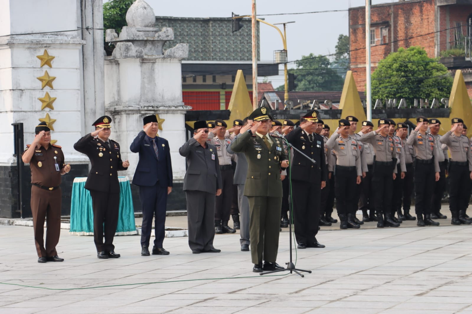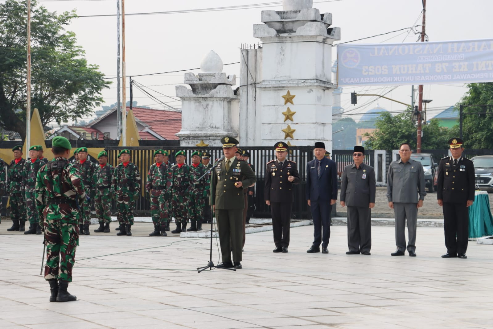 Upacara ziarah nasional dalam rangka HUT TNI Ke-78 tahun 2023 di hadiri Dandim 0406/Lubuk Linggau Letkol Inf Kunto Adi Setiawan S.E.,M.Han , Kapolres Lubuk Linggau AKBP Indra Arya Yudha SH.,S.I.K.,MH , Kapolres Musi Rawas diwakili Kompol Forliamzon S.I.K , Kajari Lubuk Linggau Riyadi Bayu Kristianto SH, M.H , Kepala Pengadilan Negeri Lubuk Linggau Yunizar SH, MH ,Sekda Kota Lubuk Linggau DR. H. Tamri ,Sekwan DPRD Kota Lubuk Linggau H. Iman Senen ,Kepala OPD Pemkot Lubuk Linggau ,Persit KCK Cabang XVII Dim 0406.(Pendim 0406/LLG).