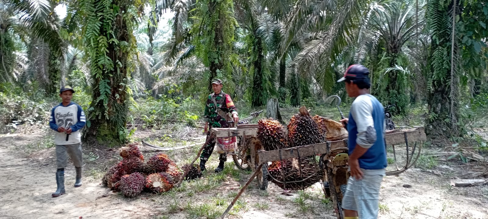 Anggota Koramil 04/Muara Lakitan Sertu Yunistan melaksanakan panen kelapa sawit seluas 8 ha di desa Mulyo Sari. Dalam pelaksanaan pendampingan sertu yunistan tidak bosan”nya ingatkan tentang pentingnya menjaga keselamatan kerja. Dalam aktifitas sehari”mengingat warga yg beraktifitas sebagai pemanen sawit. Ungkap sertu yunistan .(pendim 0406/Lubuklinggau).
