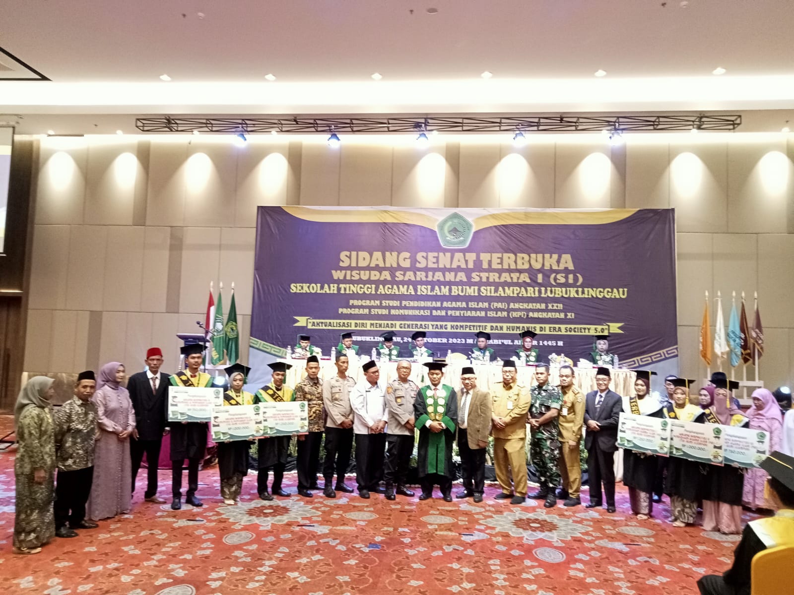 Danramil 406-08/Lubuklinggau kapten INF Abbas Syarif mewakili komandan kodim,menghadiri acara wisuda strata 1(S1) pendidikan agama islam di kelurahan batu urip taba Kecamatan Lubuklinggau timur I Kota Lubuklinggau. Selasa(24/10/2023).