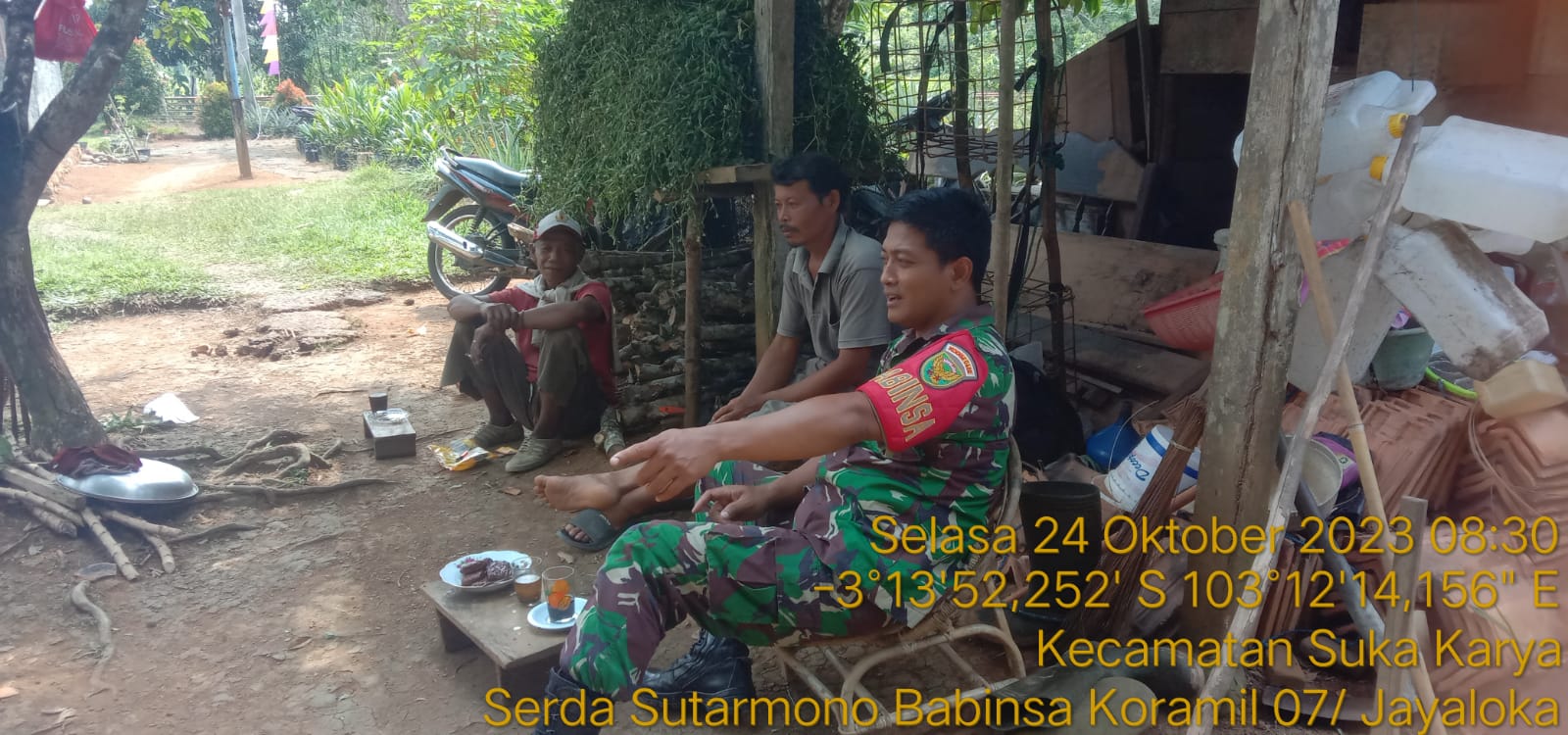Babinsa Koramil 406-07/Jayaloka Kodim 0406/Lubuk Linggau. Serda Sutarmono melaksanakan komunikasi sosial (Komsos) bersama warga masyarakat binaan membahas tentang keamanan dan kebersihan yang ada di lingkungan desa ciptodadi Kecamatan Jayaloka Kabupaten Musi Rawas. Selasa (24/10/2023).