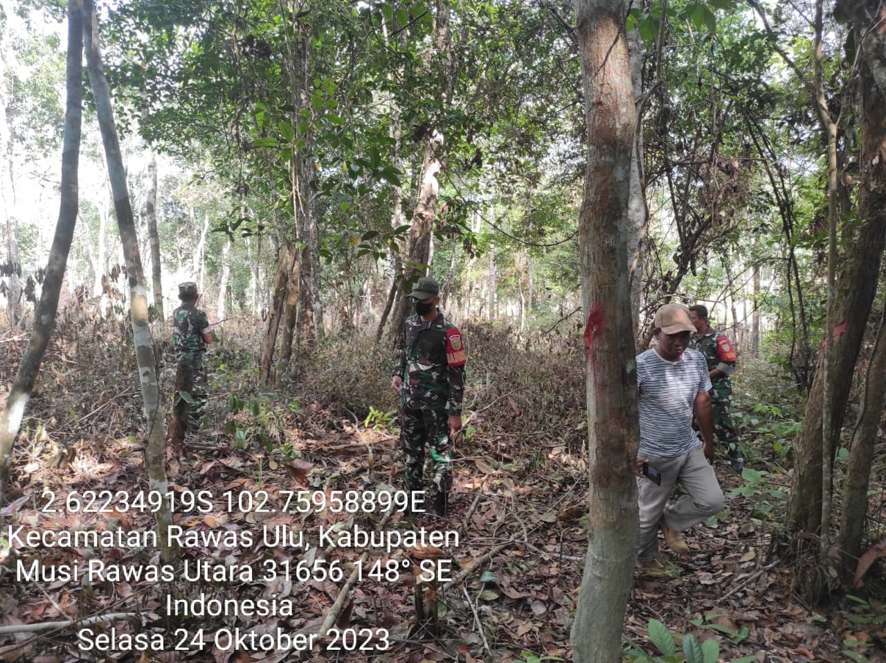 Seperti yang dilakukan oleh Serda Aroni Rosen dan Serda Amrullah rahim melaksanakan patroli karhutla di Desa sukomoro , Kecamatan Rawas ulu Kabupaten Musi Rawas Utara,Rabu (25/10/2023)