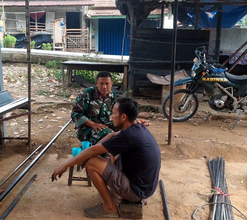 Babinsa Koramil 406-01/Rawas Ulu serda Aroni rosen komsos bersama warga dikelurahan pasar surulangun Kecamatan Rawas Ulu Kabupaten Musi Rawas Utara. Kamis(26/10/2023).