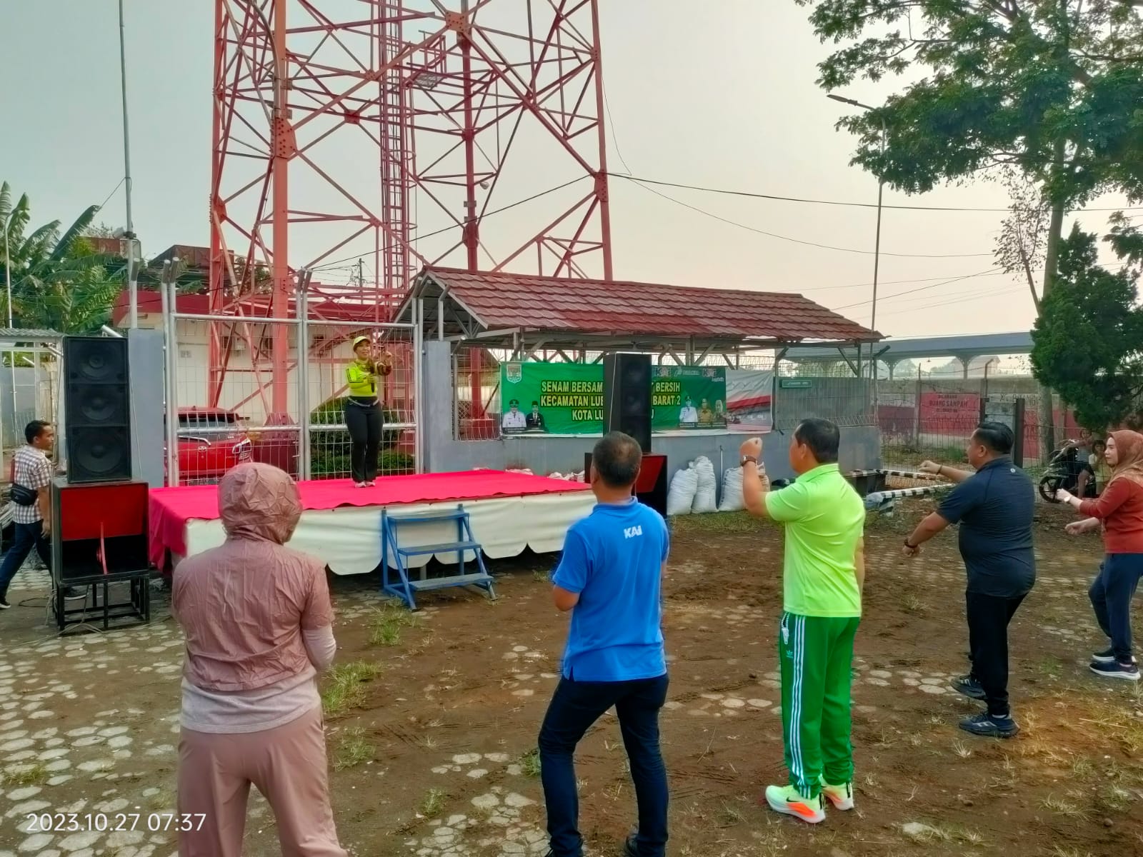 Babinsa Koramil 406-08/kota Lubuklinggau Serda Zainal bersama masyarakat wilayah kecamatan barat 2 dan Petugas Kesehatan, Bidan desa dan ibu-ibu PKK, dan warga melaksanakan senam sehat untuk meningkatkan imun tubuh, di halaman kantor camat barat ll, kota Lubuklinggau. Jumat (27/10/2023).