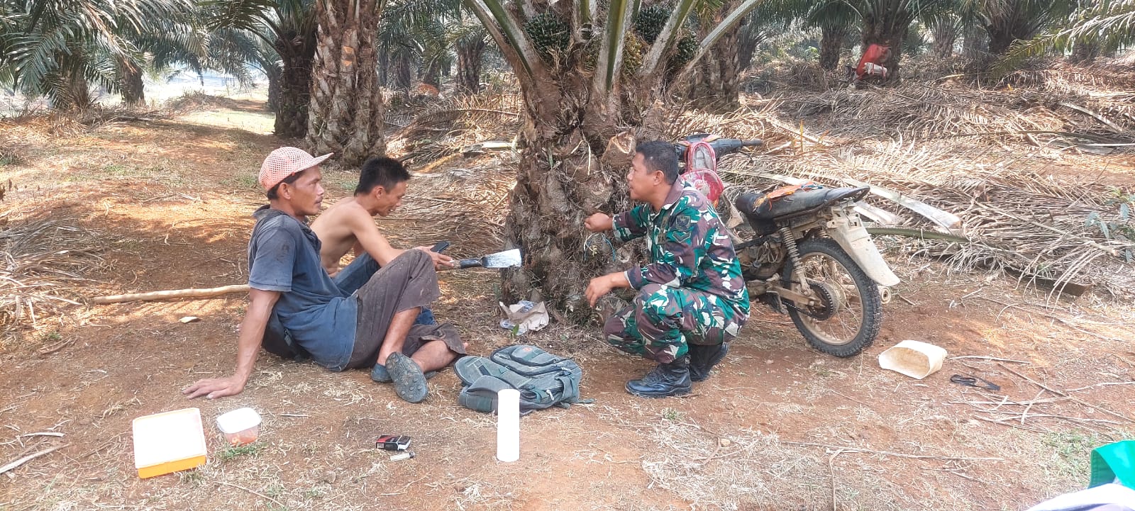 Babinsa Koramil 406-01/Rawas ulu serda Aroni rosen komsos bersama warga didesa sungai baung Kecamatan Rawas ulu Musi Rawas Utara.Selasa(07/11/2023).
