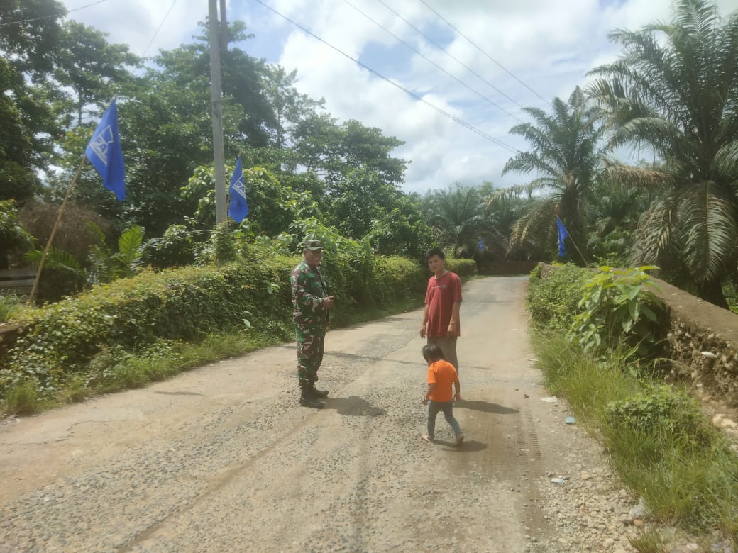 Babinsa Koramil 406-02/Rawas Ilir Sertu hotob melaksanakan pemantauan aliran sungai yang sering meluap didesa binaan.