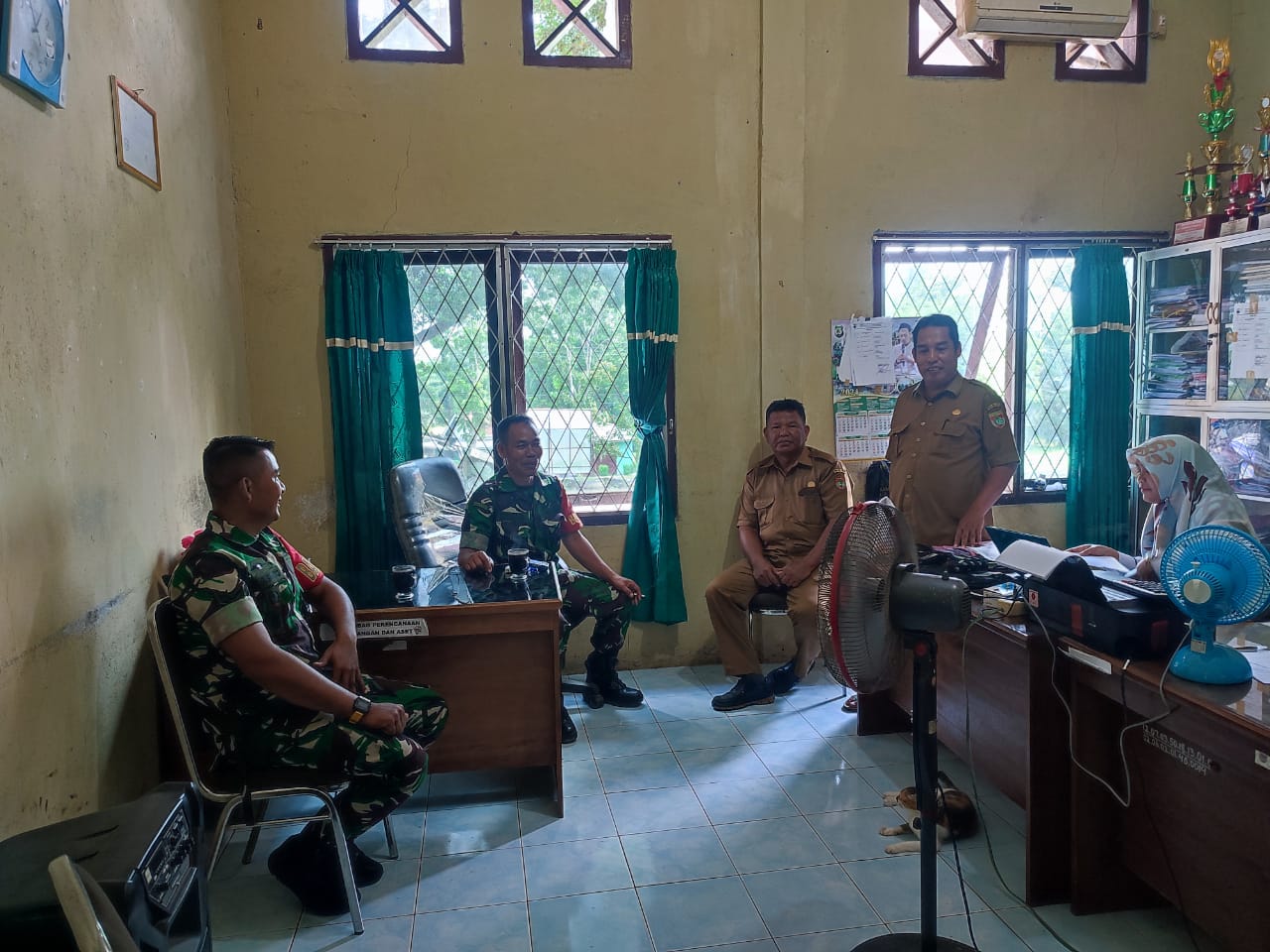 Babinsa Koramil 406 – 09/ Terawas Serka Bambang Antoni Melaksanakan Kegiatan Komsos Bersama Perangkat Desa Dan Berkordinasi Untuk Melaksanakan Karbak Penanaman Pohon Di Kelurahan Sumber harta, Kecamatan Sumber Harta,  Kabupaten Musirawas