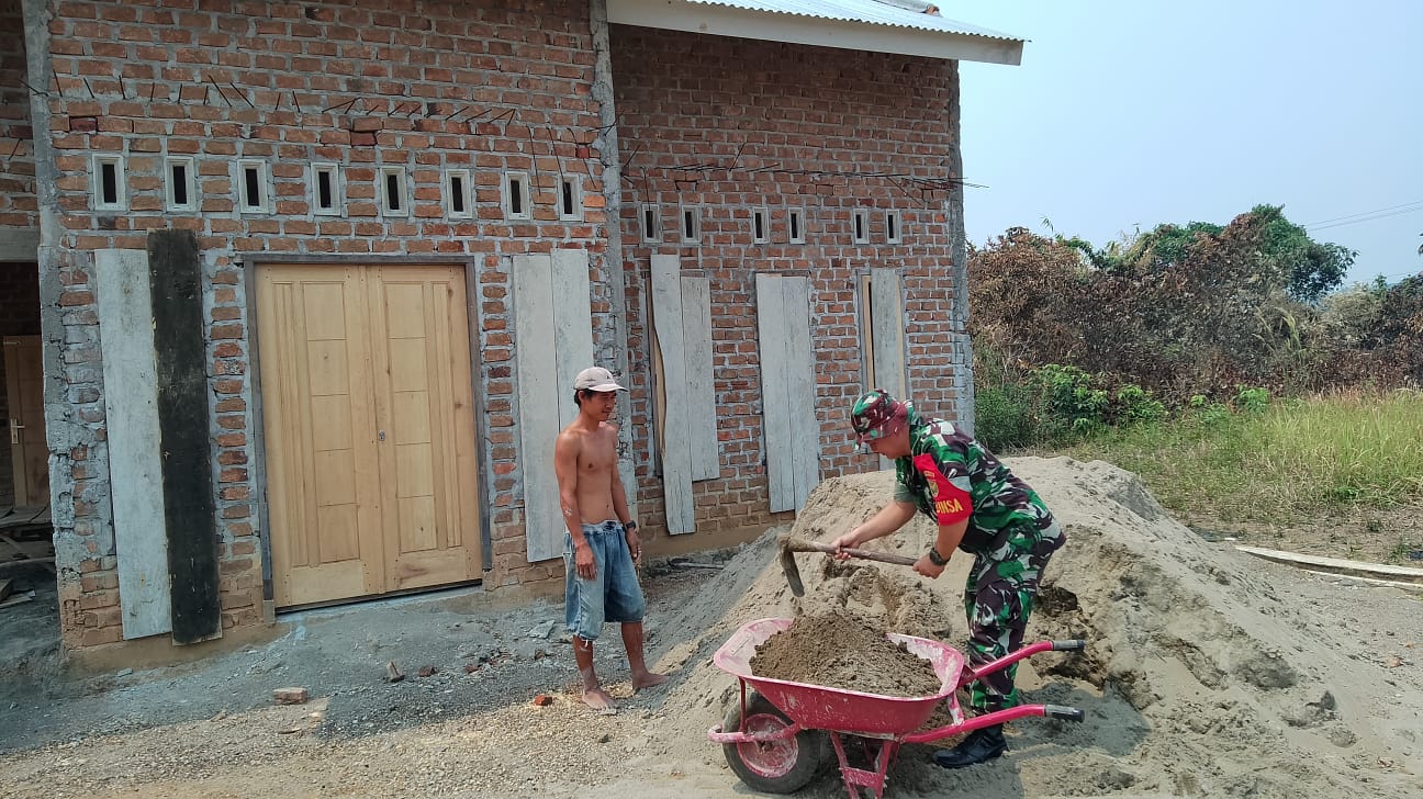 Babinsa Koramil 406-03/Rupit Sertu Yudha Satria Bantu Warga Membangun Rumah Dan Selalu Menjaga Kebersamaan , Di Desa Maur, Kecamatan Rupit, Kabupaten Musi Rawas Utara.