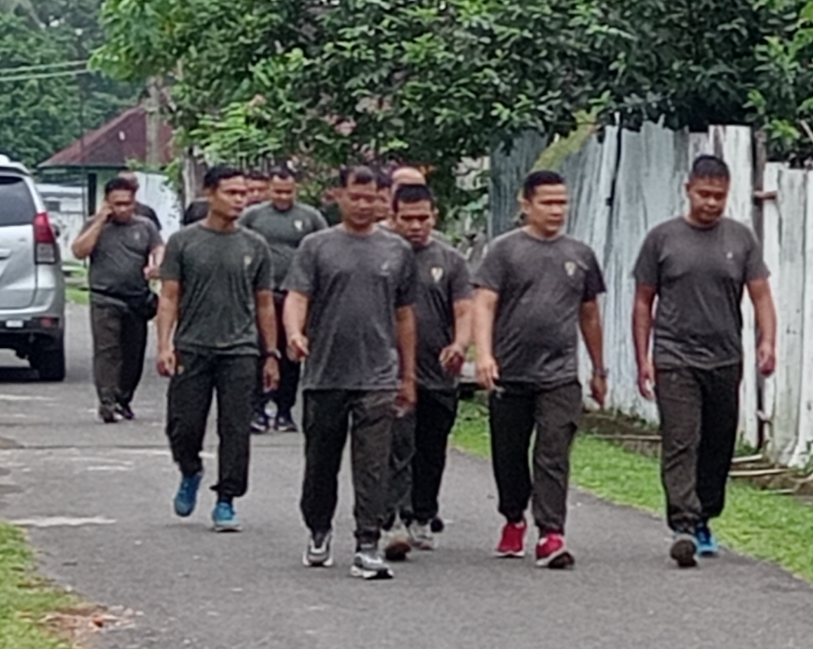 Personel staf kodim 0406/Lubuklinggau lakukan senam dan jalan santai guna jaga kebugaran tubuh,karna di dalam tubuh yg sehat terdapat jiwa yang kuat Jum’at (22/12/2023).