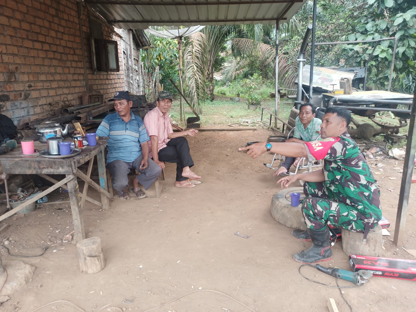 Babinsa koramil 406-04/Muara Lakitan, Kodim 0406/Lubuklinggau sertu Antoni melakukan Komunikasi sosial dan sambangi pengusaha bengkel mobil yg berada di desa binaan tepat nya di desa Muara rengas Kecamatan Muara Lakitan, kabupaten Musi Rawas. Jum’at (22/12/2023).