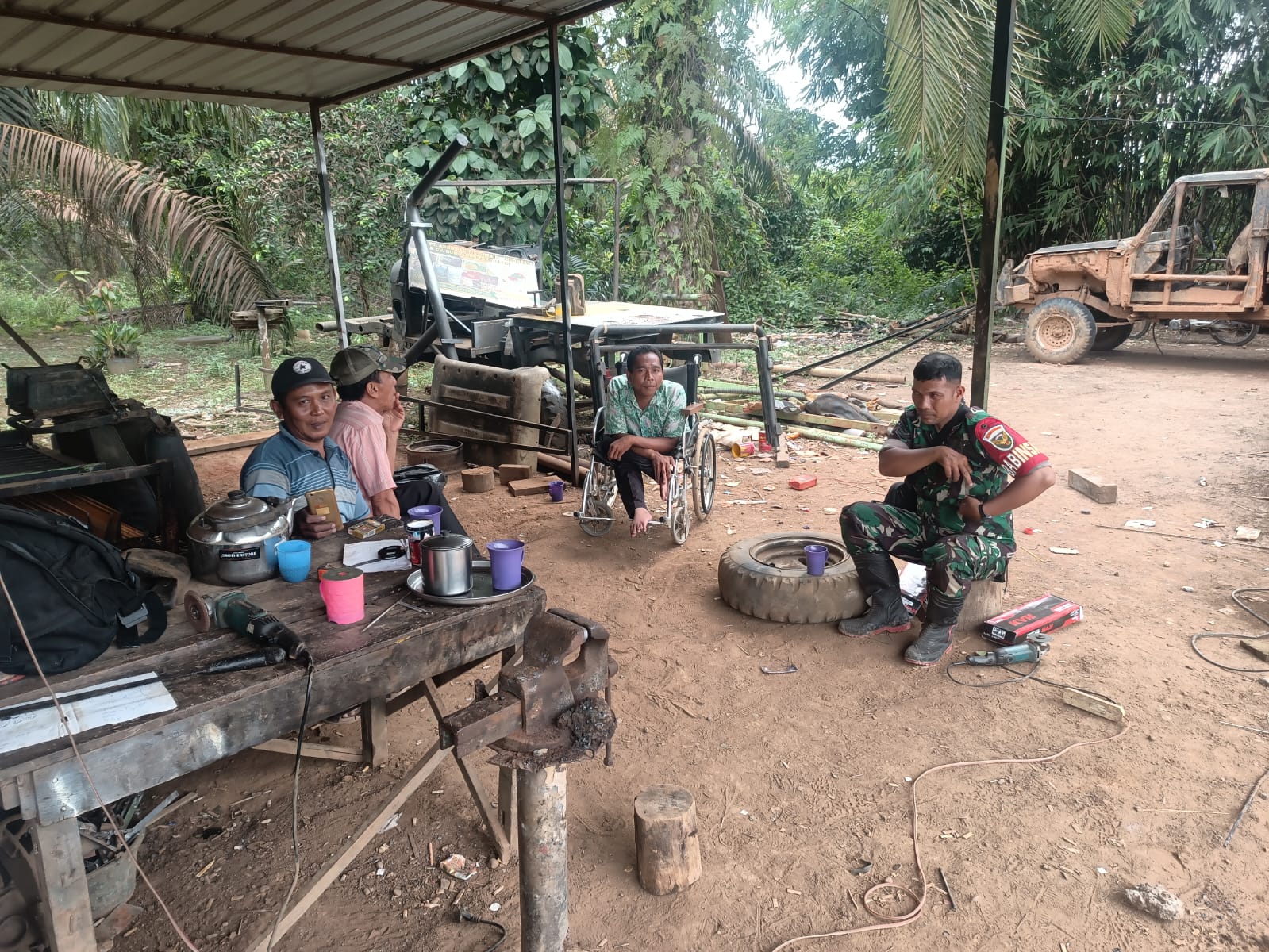 Sertu Antoni Babinsa Koramil 406-04/Muara Lakitan sambangi bengkel mobil masyarakat desa binaan.