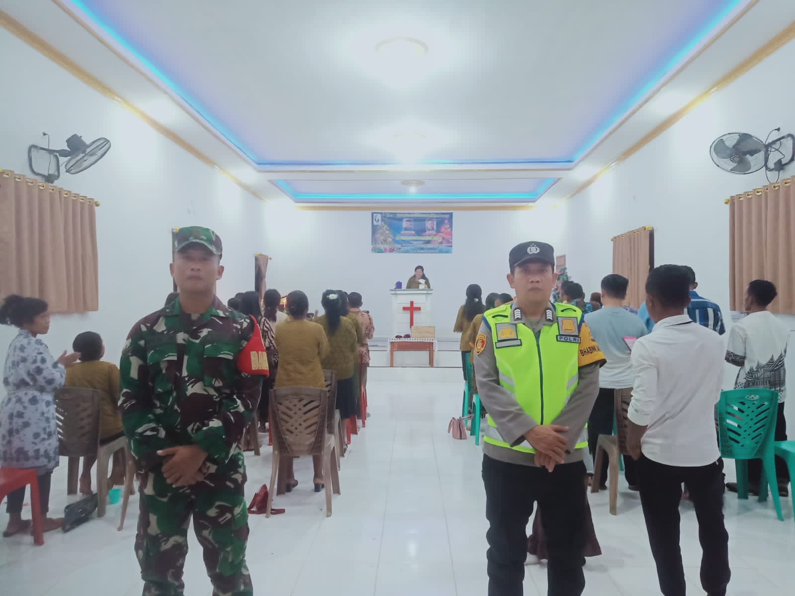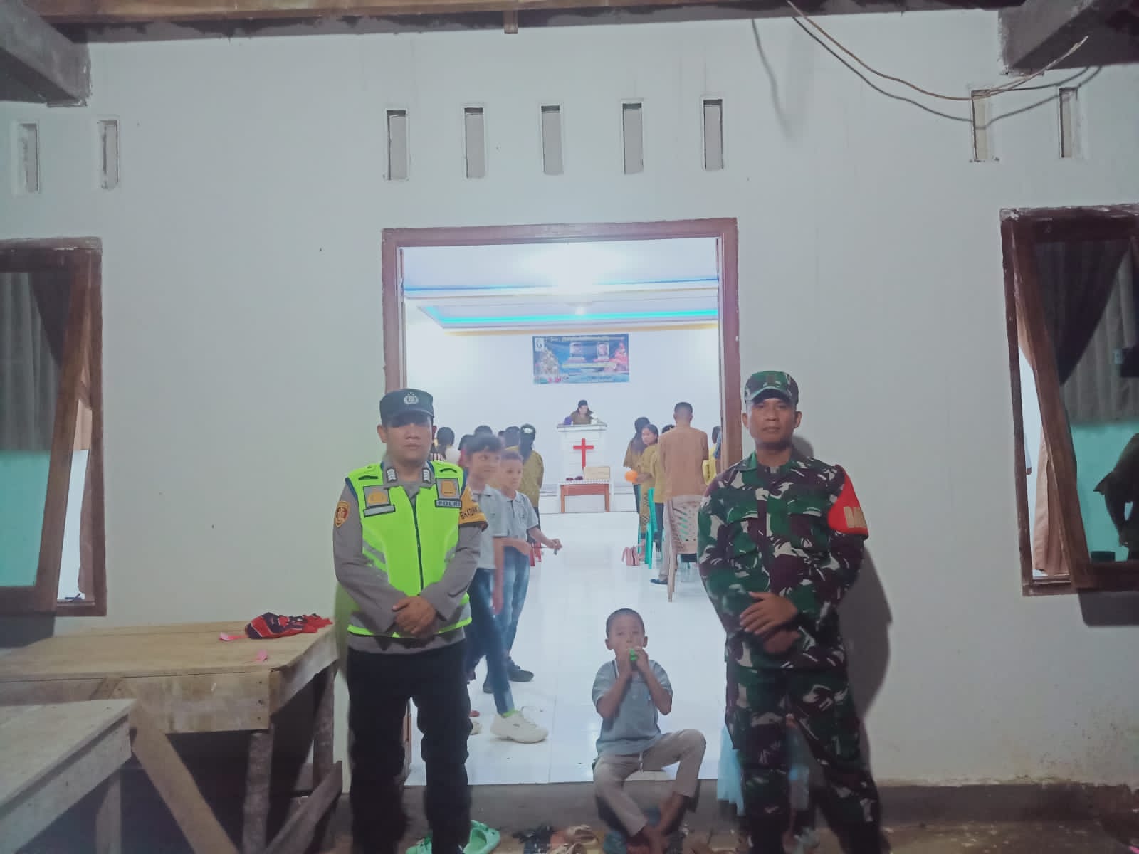 Lensa Garuda- Musi Rawas. Dalam rangka memberikan pengamanan kepada jemaat umat kristiani dalam menjalankan ibadah Serda Arian Arizal Babinsa Koramil 406-05/Muara Kelingi bersinergi dengan anggota Polsek melaksanakan pengamanan Bertempat di Gereja PDGI Desa Mangan Jaya Kecamatan Muara Kelingi Kabupaten Musi Rawas. Senin(25/12/2023).