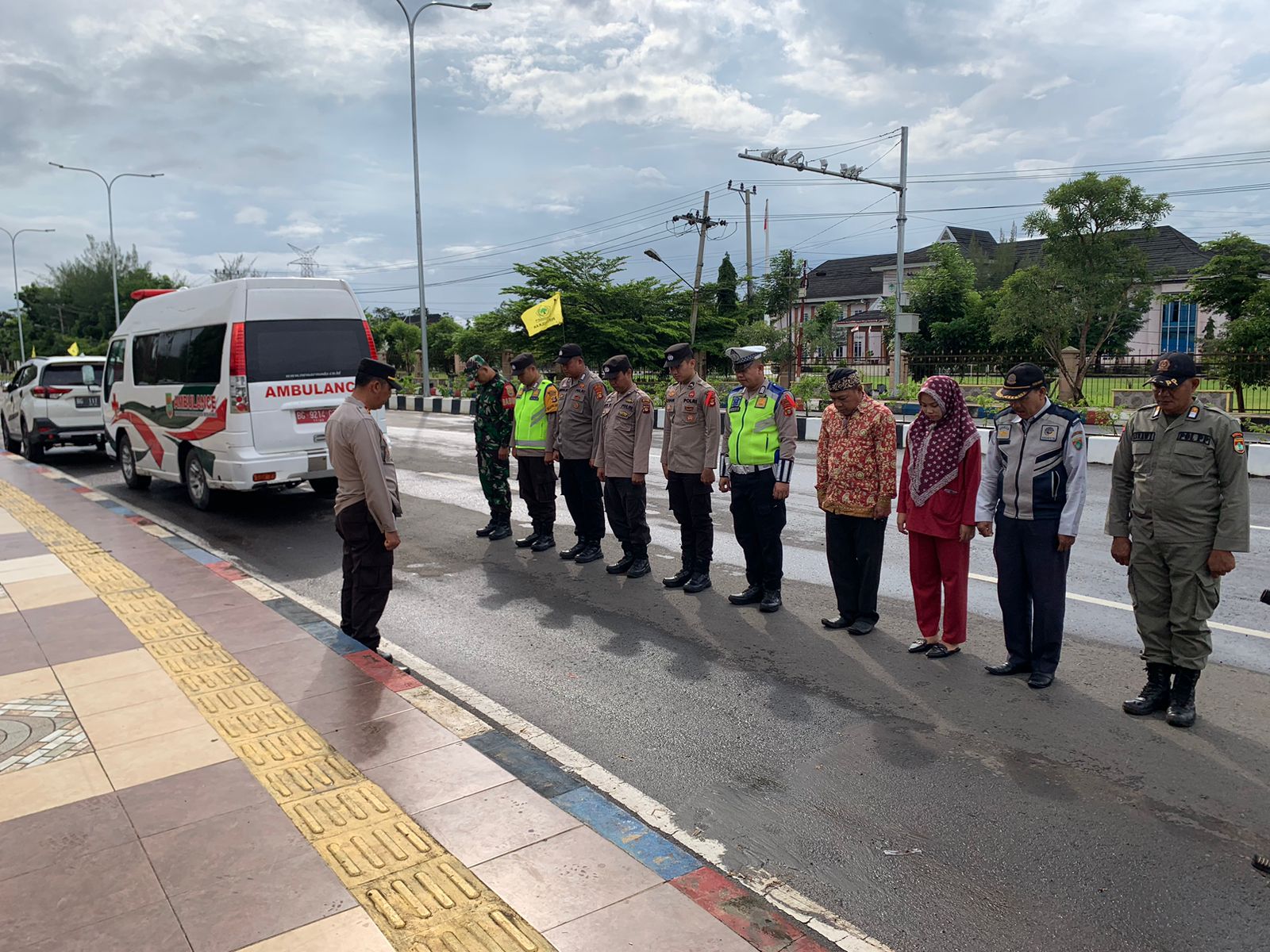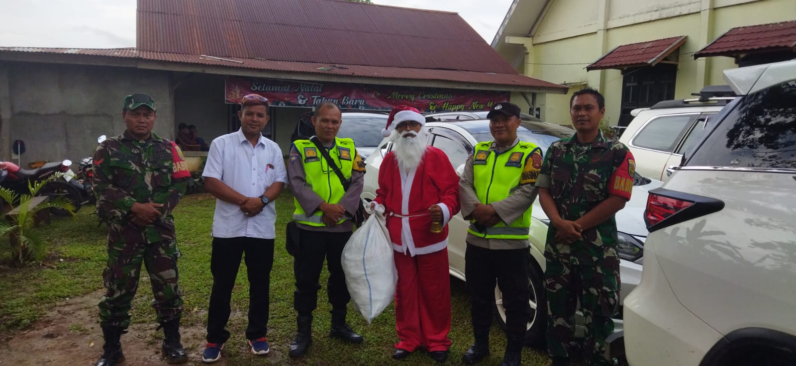 Babinsa Koramil 406-04/Muara Lakitan koptu Samsul beserta satu orang Babinsa dan Babinkamtibmas serta personel gabungan dan anggota polres Musi Rawas. Melak sana kan apel pengecekan di depan pos pengamanan. Senin (25/12/2023).