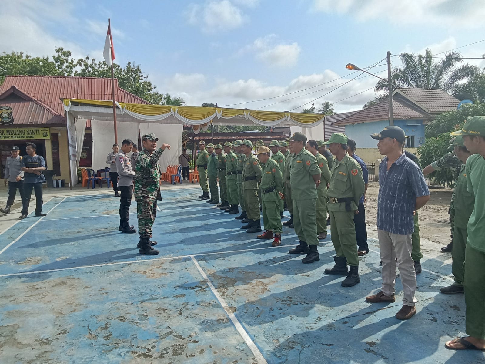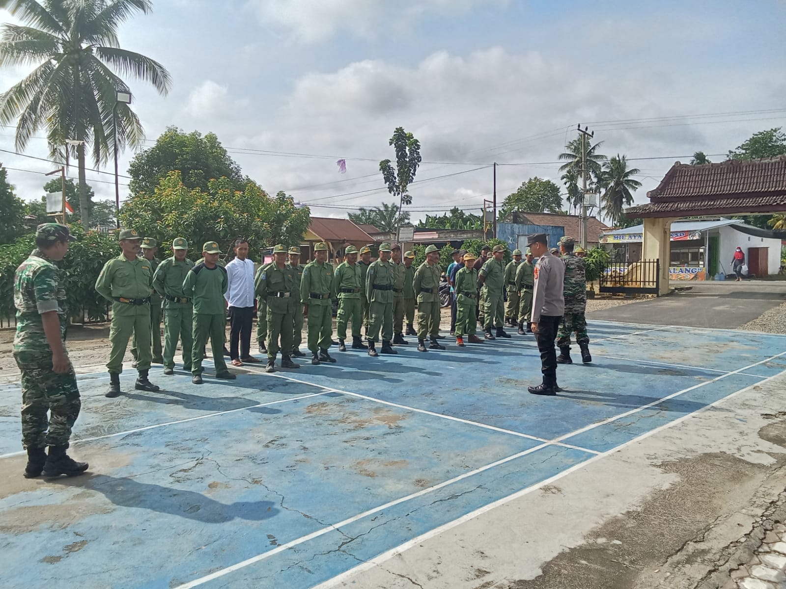 Jelang Pilpres, pelda Rudi Yanto dan Babinsa serta anggota Polsek lakukan pembinaan dan pelatihan disiplin hansip di wilayah binaan.