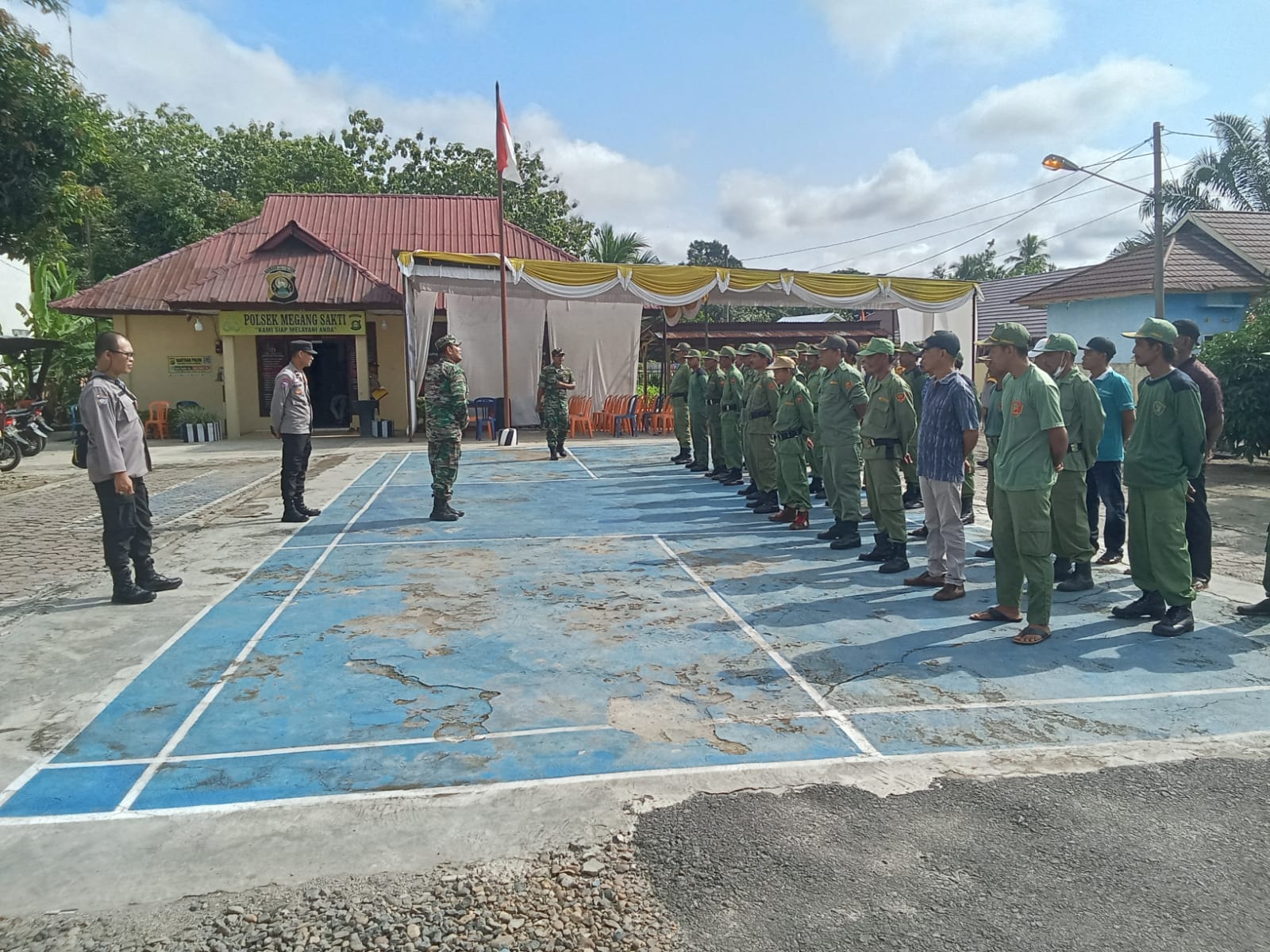 Menjelang pilpres 2024 pelda Rudi Yanto beserta Babinsa Dengan kemampuan yang dimiliki sebagai seorang anggota TNI, beserta anggota Polsek lakukan pembinaan pelatihan disiplin anggota hansip di depan kantor Polsek kecamatan Megang sakti, kabupaten Musi Rawas. Jum’at (29/12/2023).