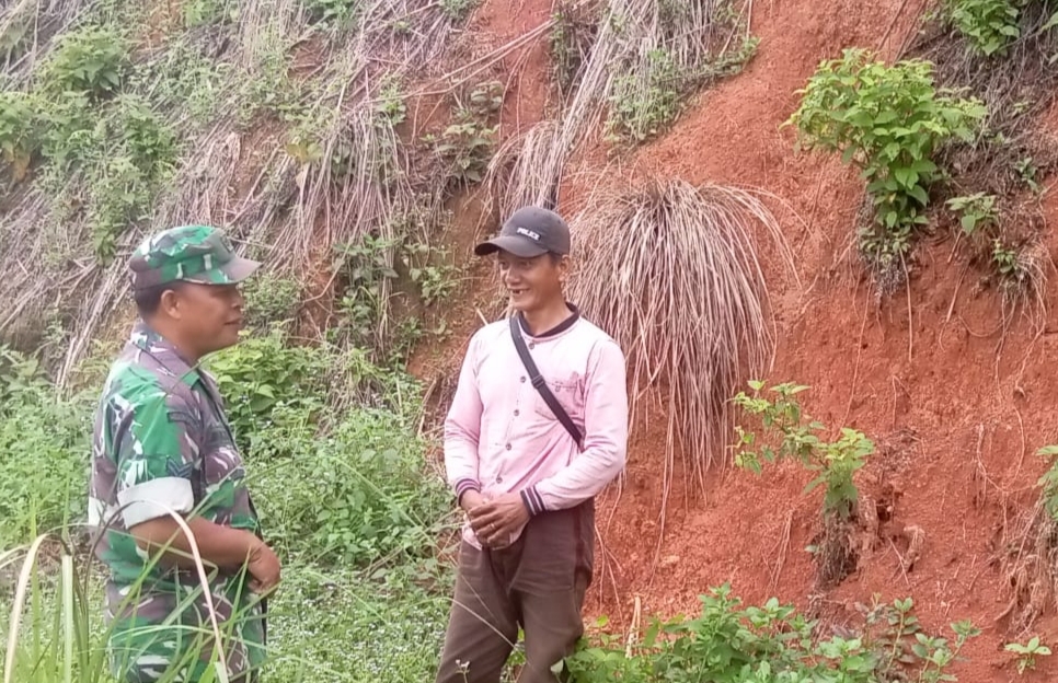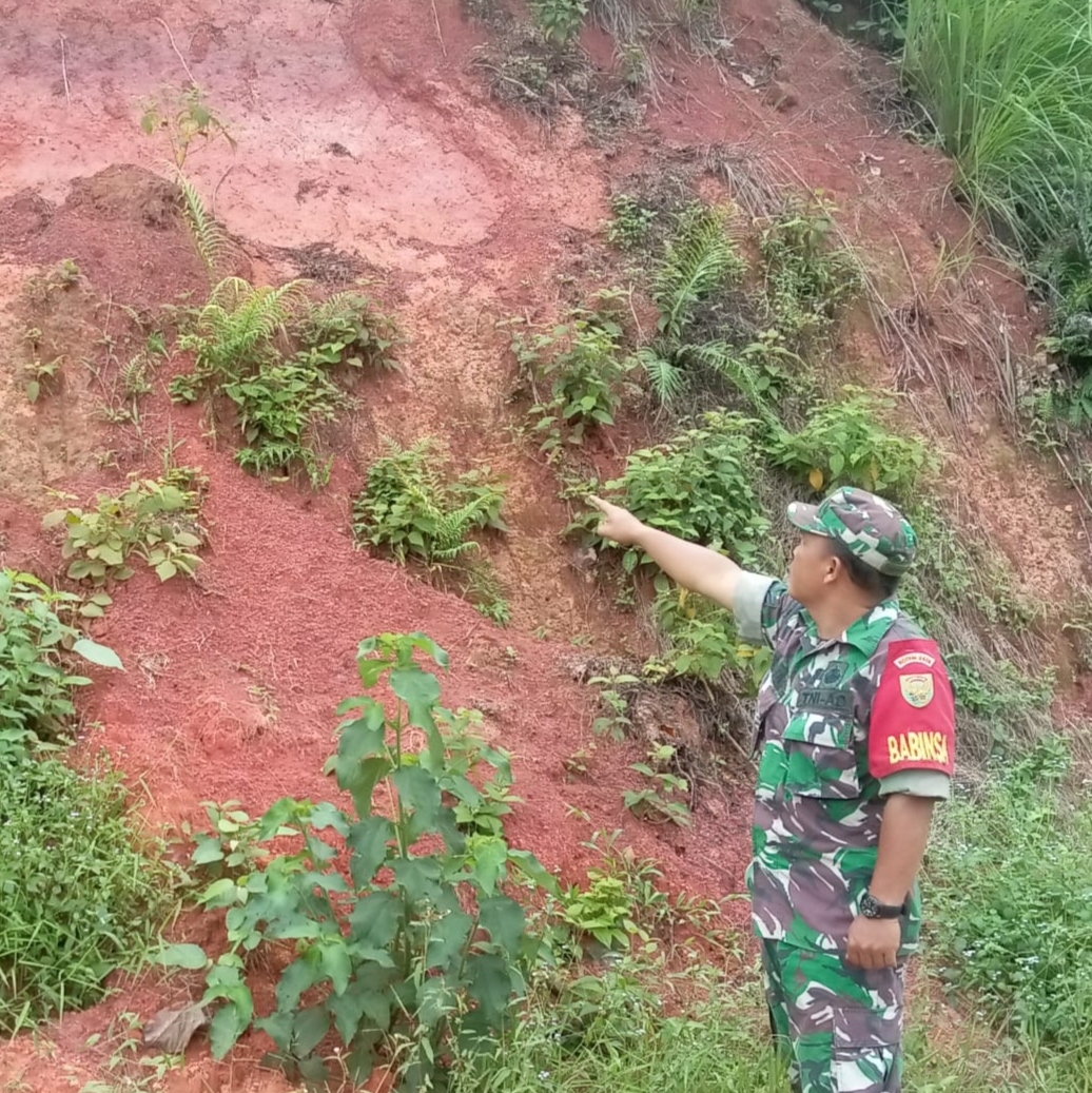 Babinsa Koramil 406-07/jayaloka Kodim 0406/Lubuklinggau, Sertu Amron musalisa sambangi desa ngesti karya yang merupakan desa binaan guna, di mana desa tersebut banyak terletak ketinggian yg akan rawan dengan tanah longsor pada saat memasuki Musim penghujan seperti saat ini,kali ini Babinsa bersama masyarakat warga desa ngesti karya Kecamatan jayaloka, kabupaten Musi Rawas, turun langsung ke lapangan guna pastikan tanah ataupun tebing masih dalam ke adaan aman. Minggu (31/12/2023).