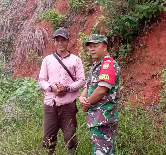 Babinsa Koramil 406-07/jayaloka Kodim 0406/Lubuklinggau, Sertu Amron musalisa sambangi desa ngesti karya yang merupakan desa binaan guna, di mana desa tersebut banyak terletak ketinggian yg akan rawan dengan tanah longsor pada saat memasuki Musim penghujan seperti saat ini,kali ini Babinsa bersama masyarakat warga desa ngesti karya Kecamatan jayaloka, kabupaten Musi Rawas, turun langsung ke lapangan guna pastikan tanah ataupun tebing masih dalam ke adaan aman. Minggu (31/12/2023).