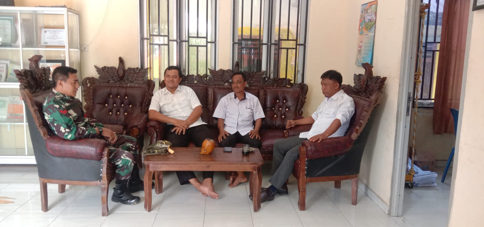 Babinsa Koramil 406-06/tugumulyo Koptu sujarwo komsos bersama perangkat desa didesa binaan.